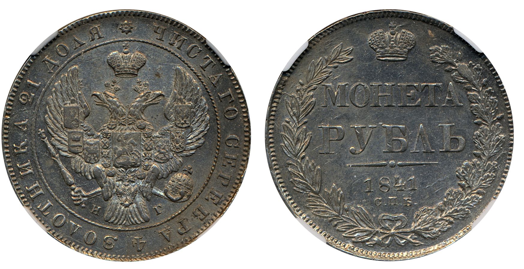 Coins, Russia. Nicholas I, Bitkin 192, 1 rouble 1841. Graded by NGC as MS62. XF-UNC. See certification at NGC