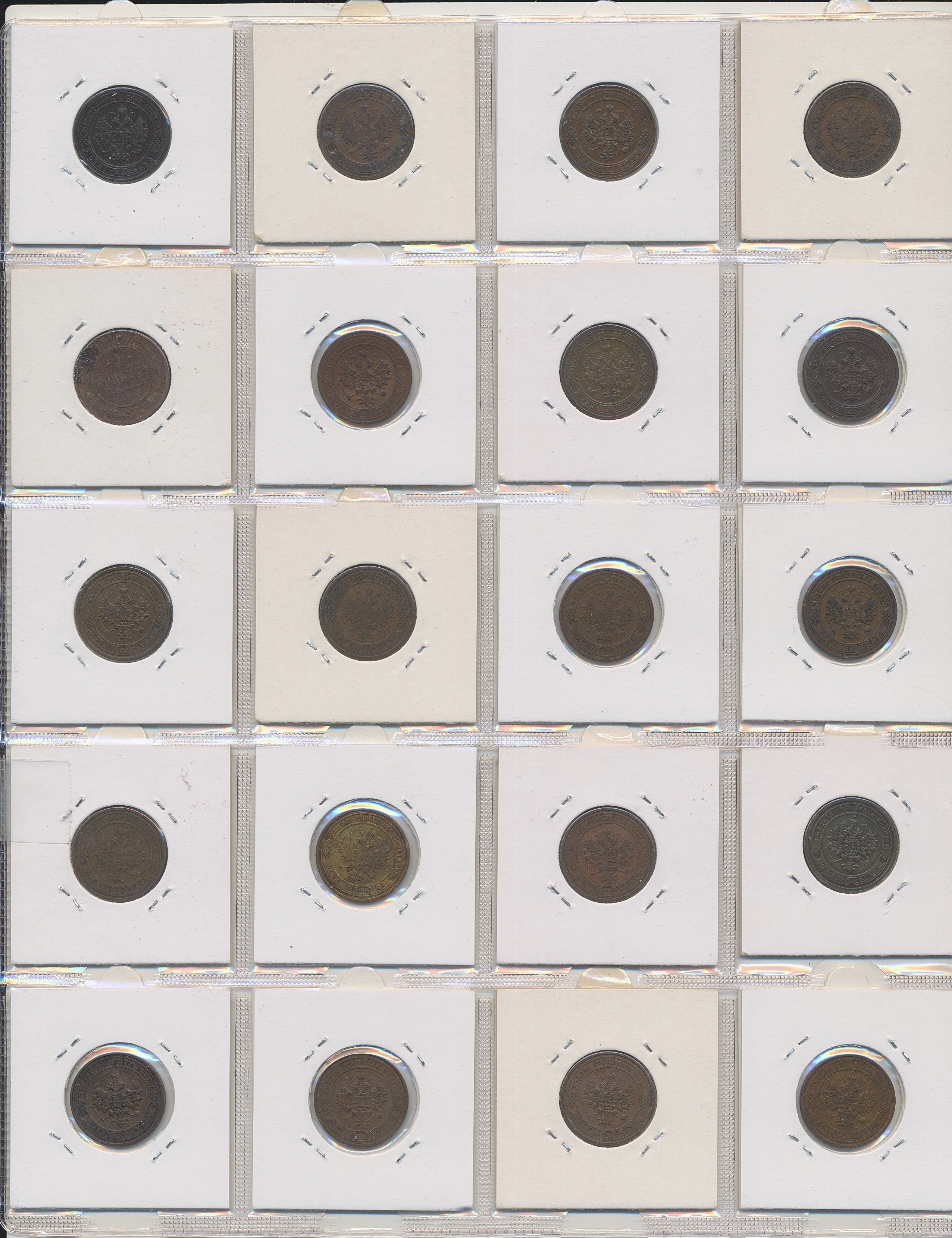 Coins, Russia. Collection of mostly Russian copper minors from ¼ kopeks up to 1 kopek coins from 1700s until 1917. All seemingly different. Also a few tokens and medals as well as a Bukhara coin. Some items are in high grades although the majority is in circulated condition. In total 196 coins – please inspect! F-XF/UNC.