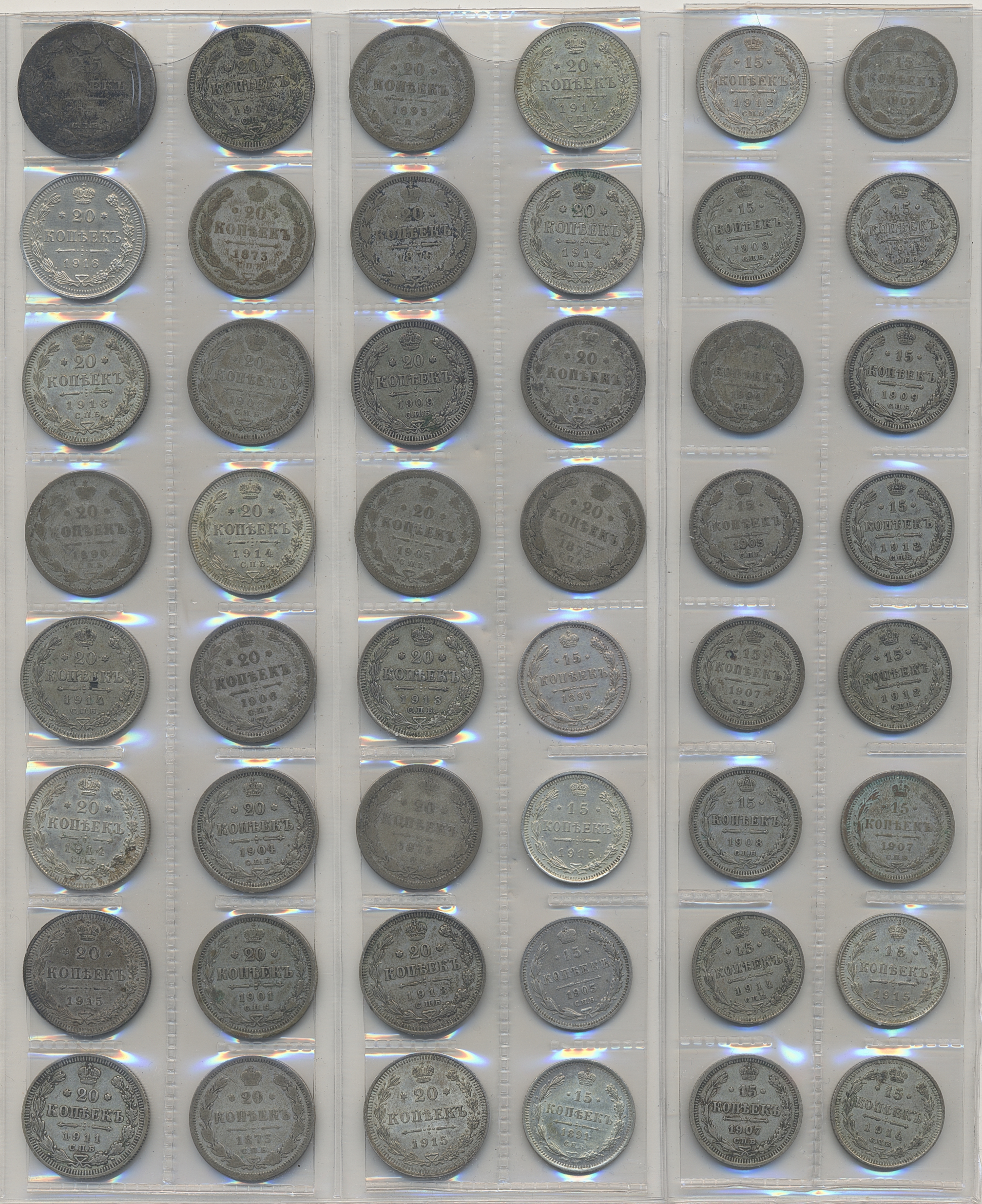 Coins, Russia. Collection of coins from Russia mostly silver coins and a few cuppercoins plus a few foreign coins. 1760-1931. In total 101 pcs. Please Inspect! .