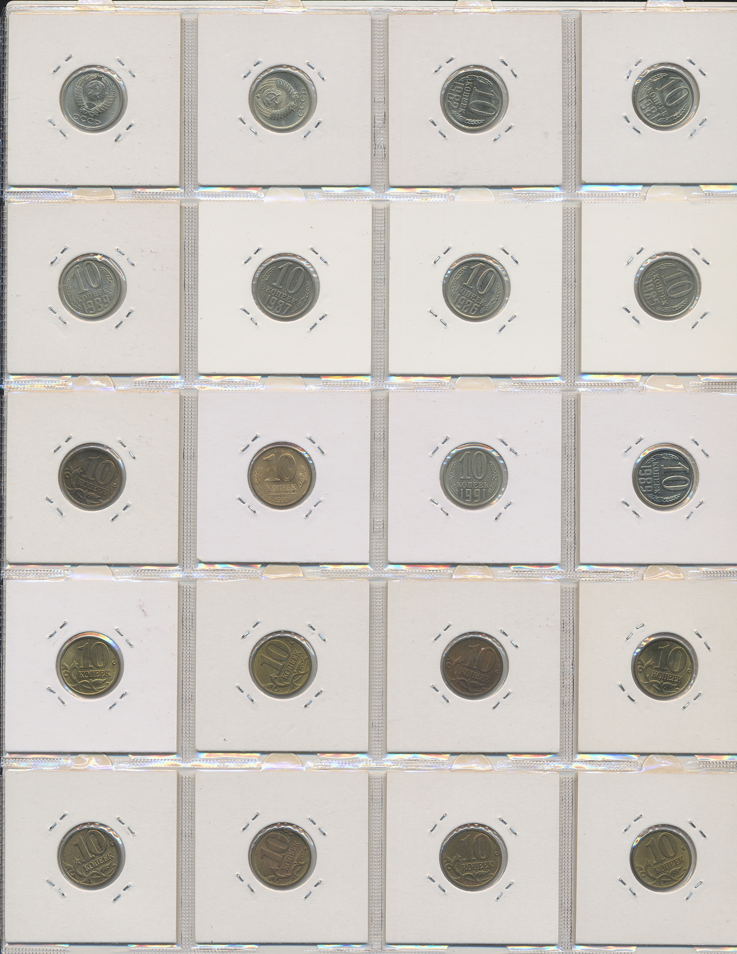 Coins, Russia. Soviet Union, Collection of coins ca 1920–2010s in binder. Seemingly all are different. Including many high grade items and some silver issues such as 1924 rouble and several 50 kopeks in 1920s. In total 592 coins. Please inspect! F-UNC.