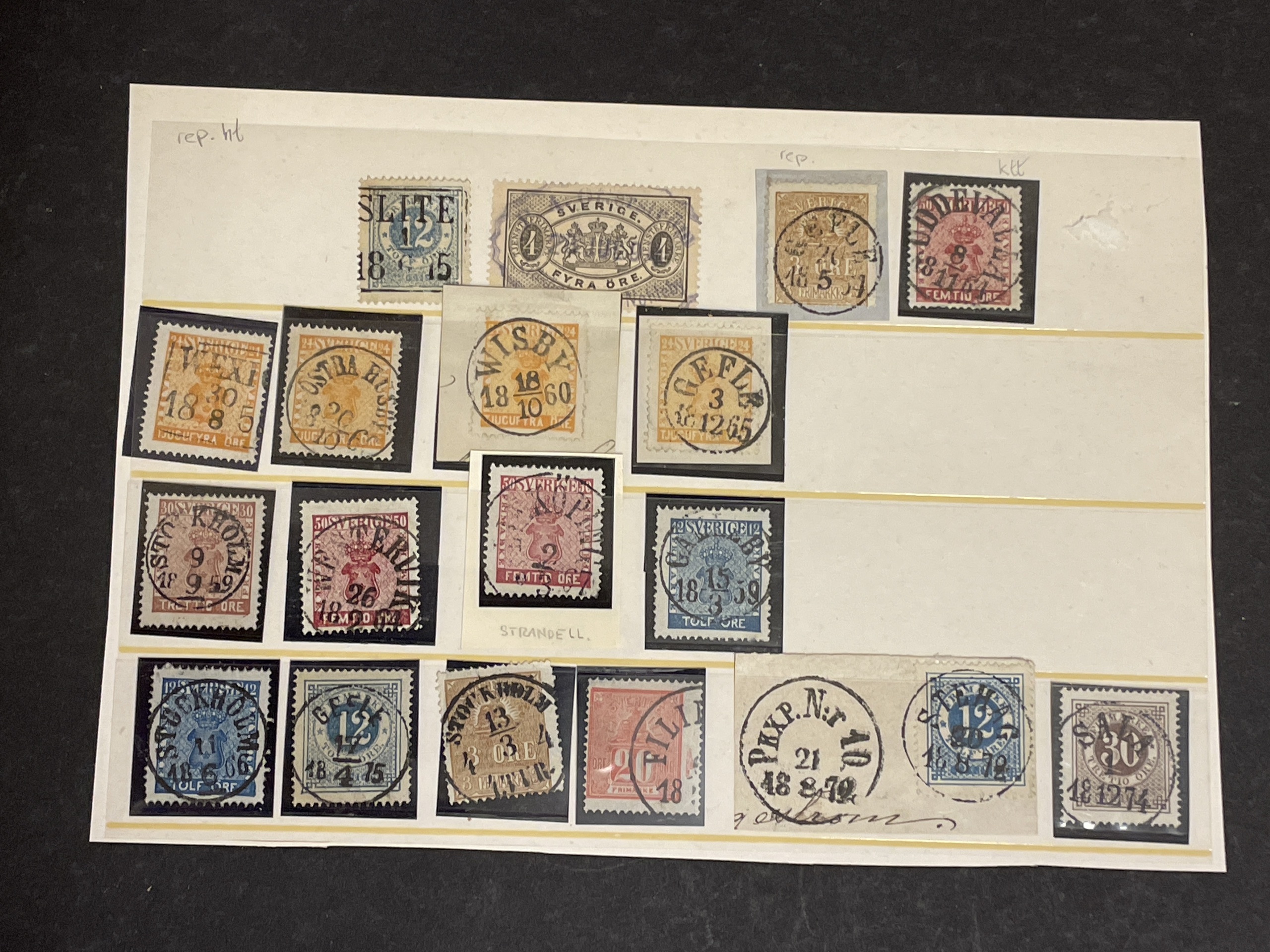 Sweden. Lot used CLASSICS. Selected stamps with superb cancellations, plus three beautiful covers. The entire lot is presented at www.philea.se. Somewhat mixed quality. (21)