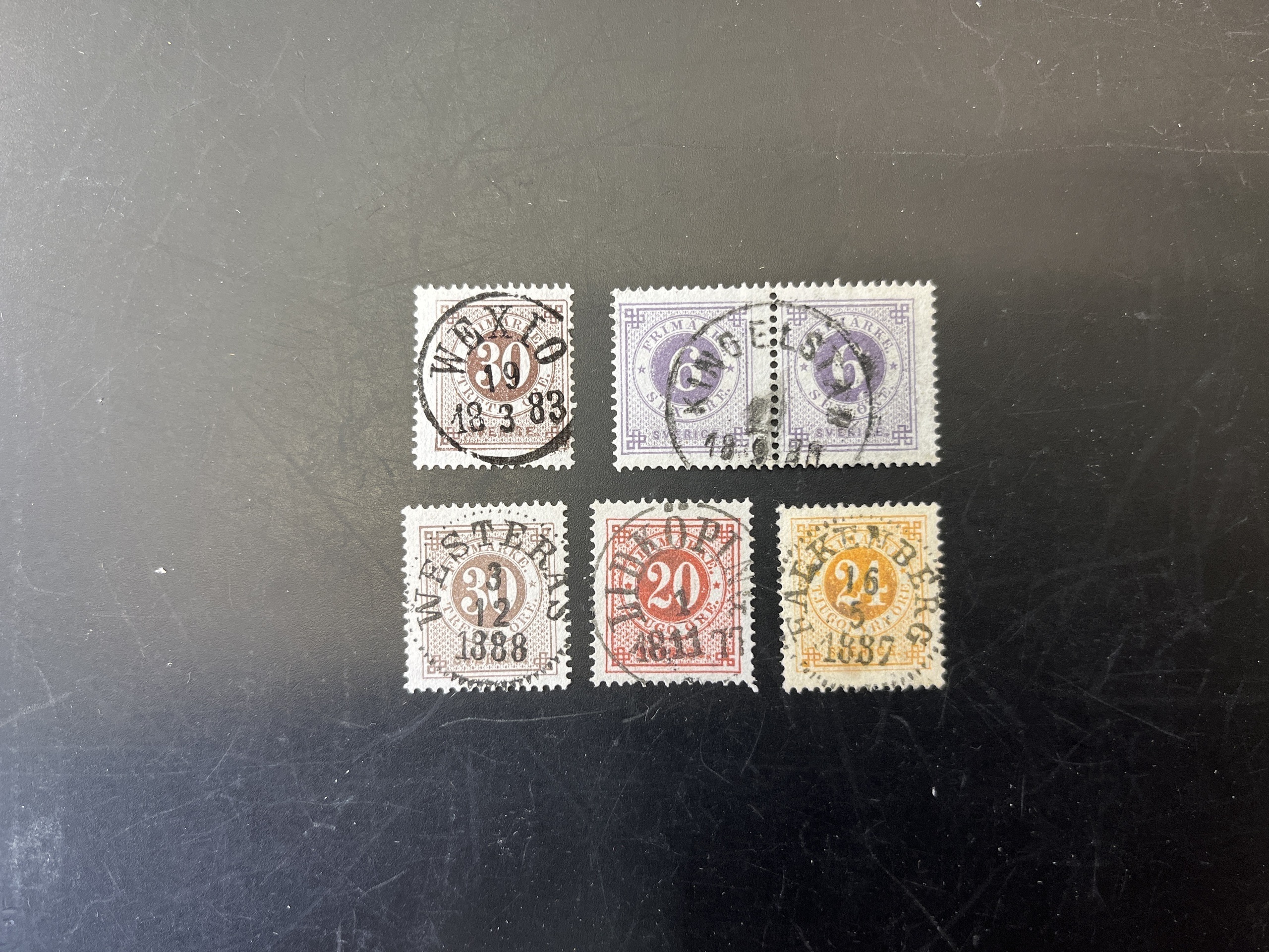 Sweden. Lot used Circle type on stock cards. Many with nice canc. (ca. 150)