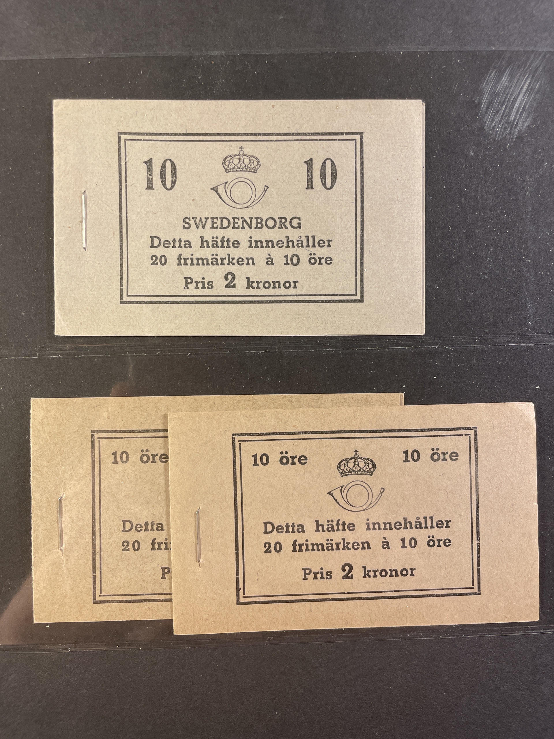 Sweden. Booklets, lot 1932–1947 in album from Lützen 10 Öre to Geijer with some better e.g H33 Swedenborg BC×1, CB×5 and H36 and H42 ×7. Somewhat mixed quality. Cat. value ca. 38000 SEK (29 Booklets)