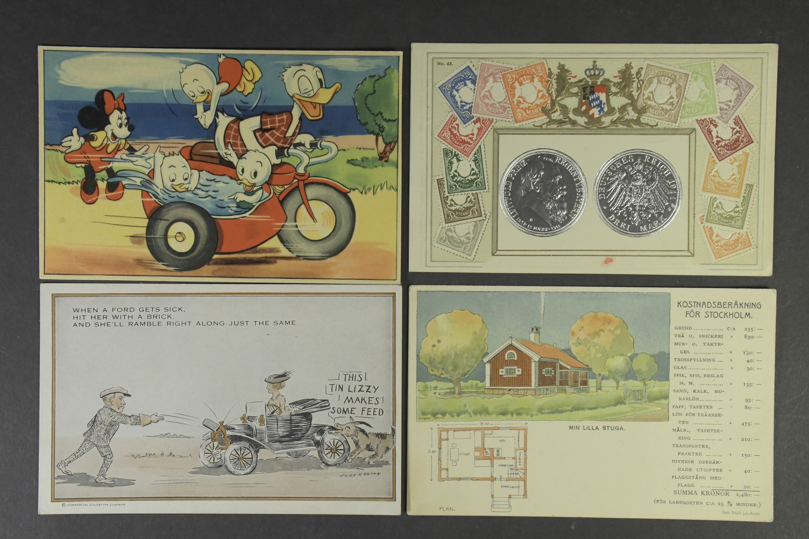 Sweden. Picture postcards. THEMATICS in box, both Swedish and foreign, all in the old size. Interesting mixture. (800).