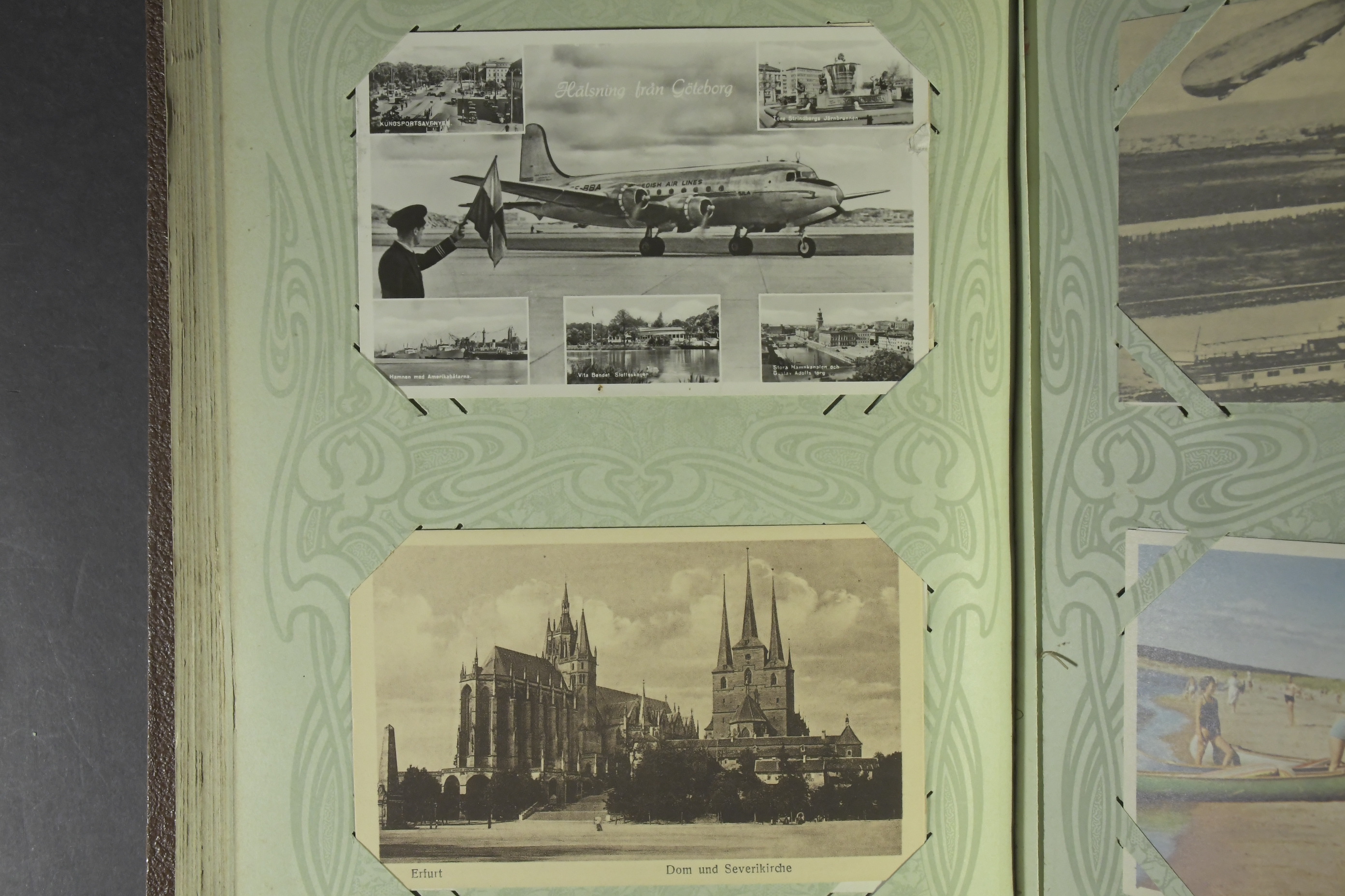 Sweden. Picture postcards. Box with 13 albums of different types, with old to modern cards, Swedish and foreign, including some Stockholm. Somewhat mixed condition. (ca. 1500). Approx. 24 kg.