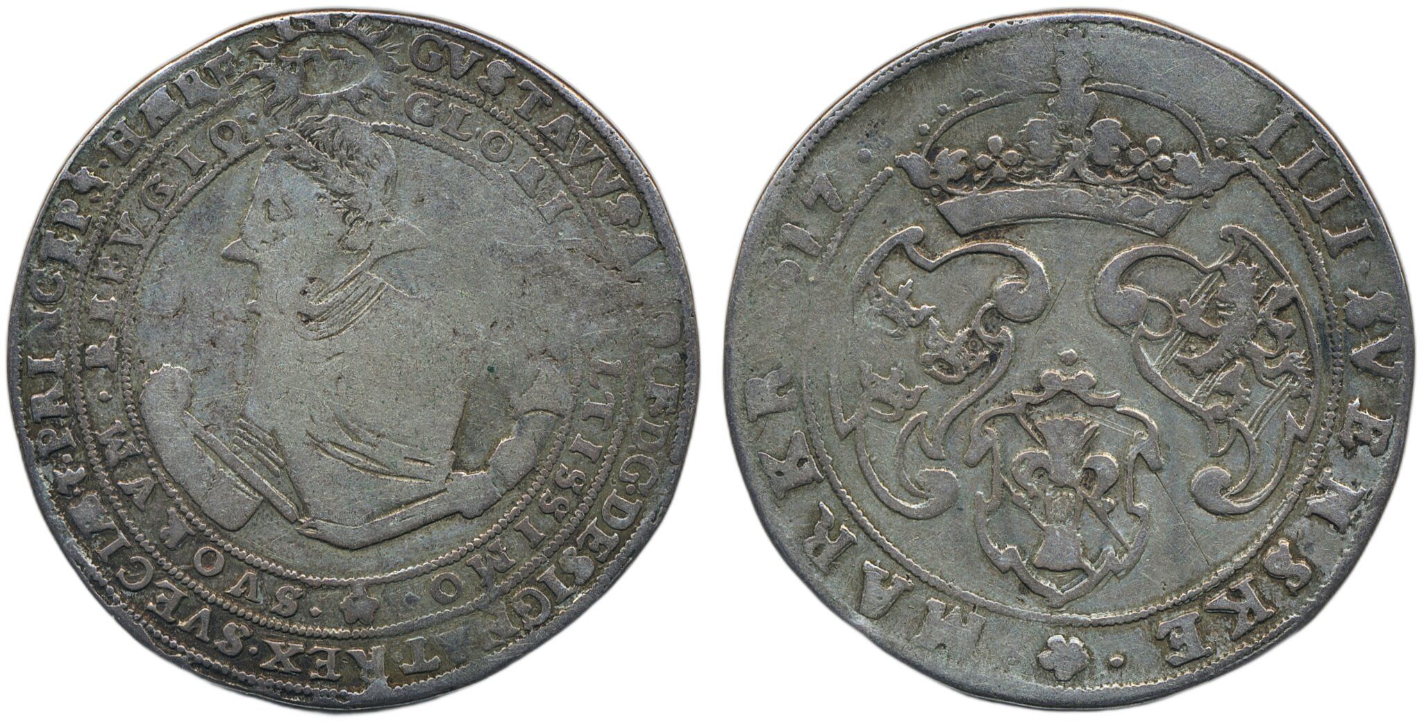 Coins, Sweden. Gustav II Adolf, SM 59, 4 mark 1617. 18.68 g. Stockholm. Scratches on reverse. 1.
