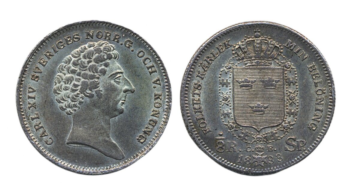 Coins, Sweden. Karl XIV Johan, SM 87, 1/8 riksdaler specie 1833. 01.