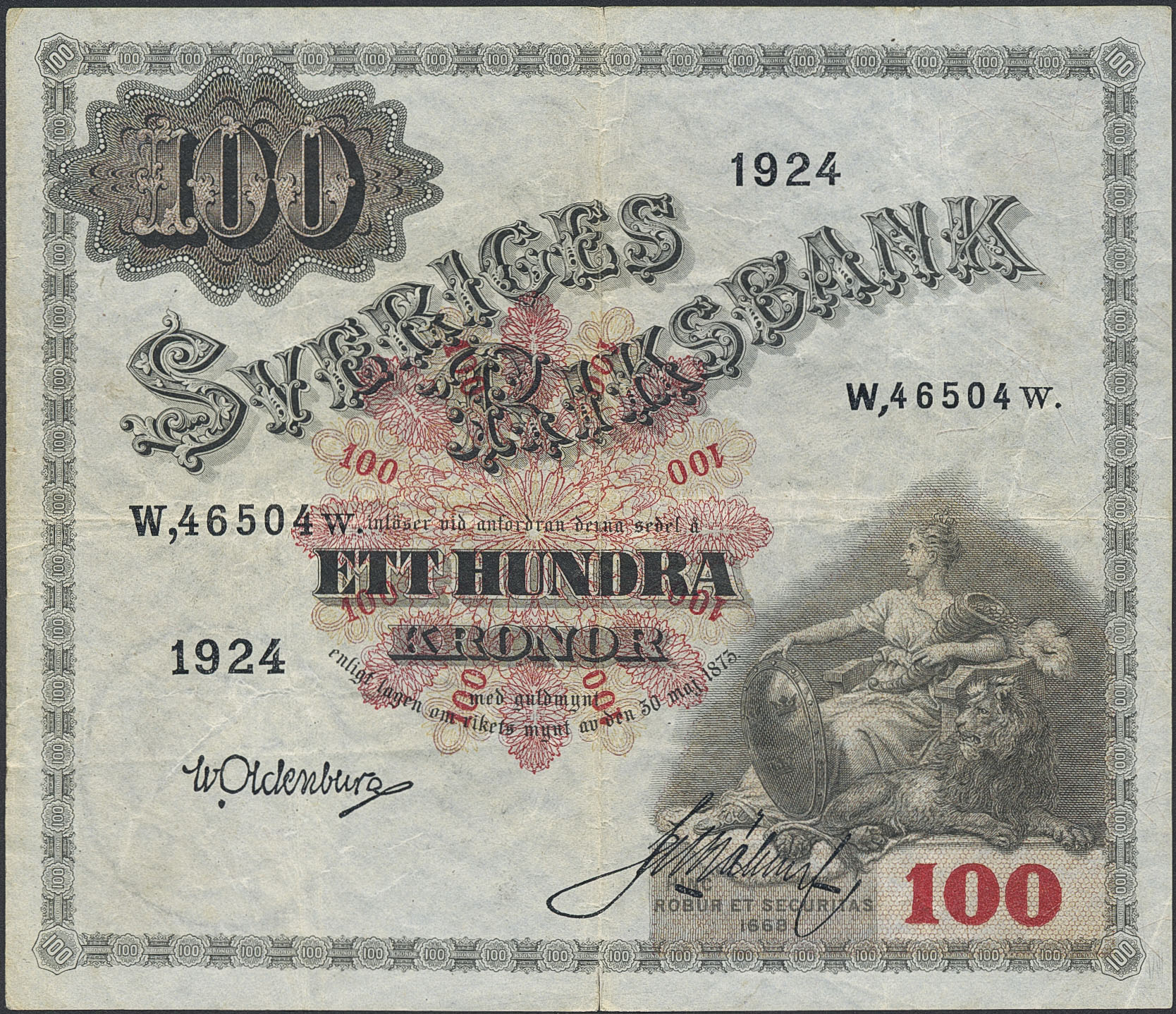 Banknotes, Sweden. SF U8:7, 100 kronor 1924. Tear. 1?/1.