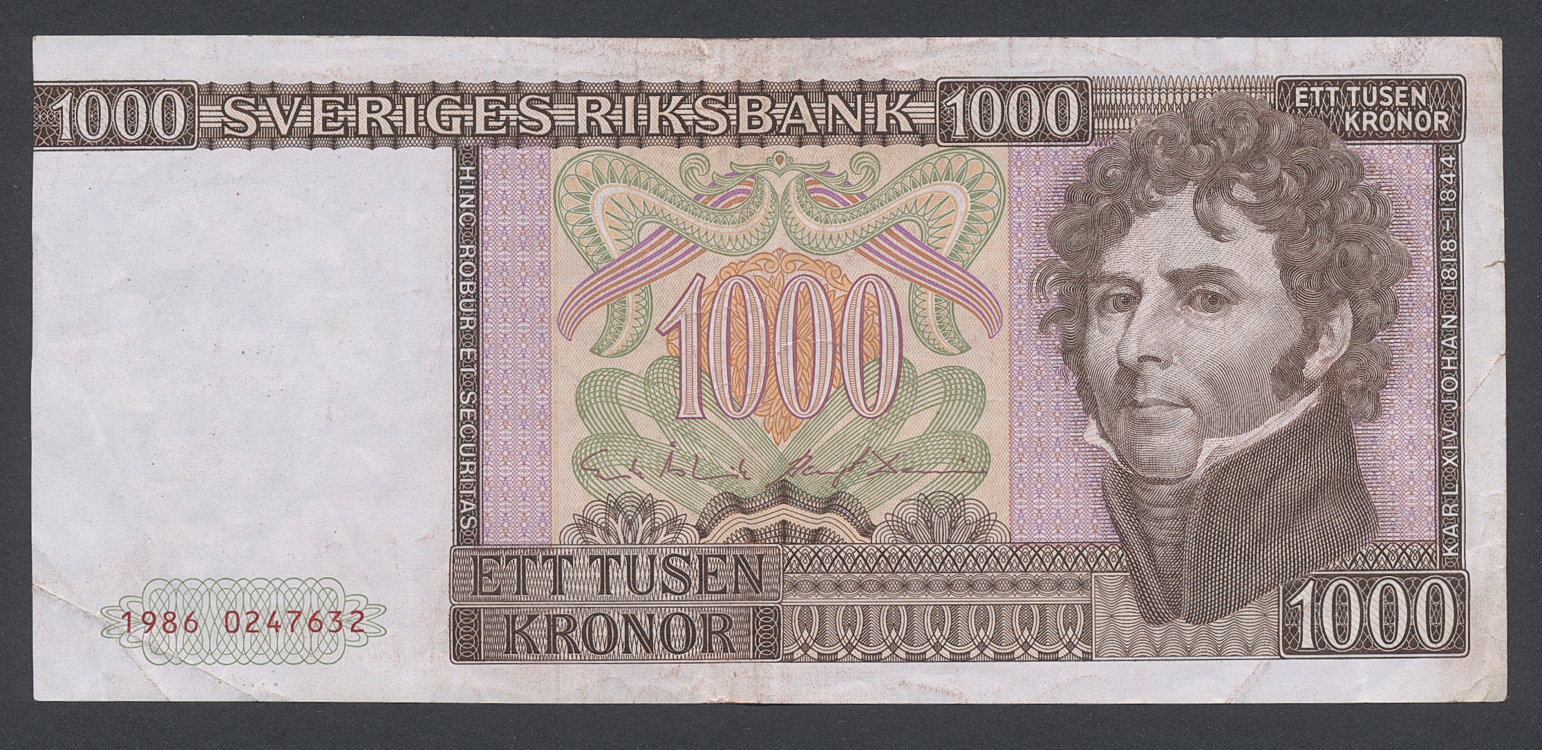 Banknotes, Sweden. 1000 kronor. Ten banknotes, 1983–1986, mixed quality. .