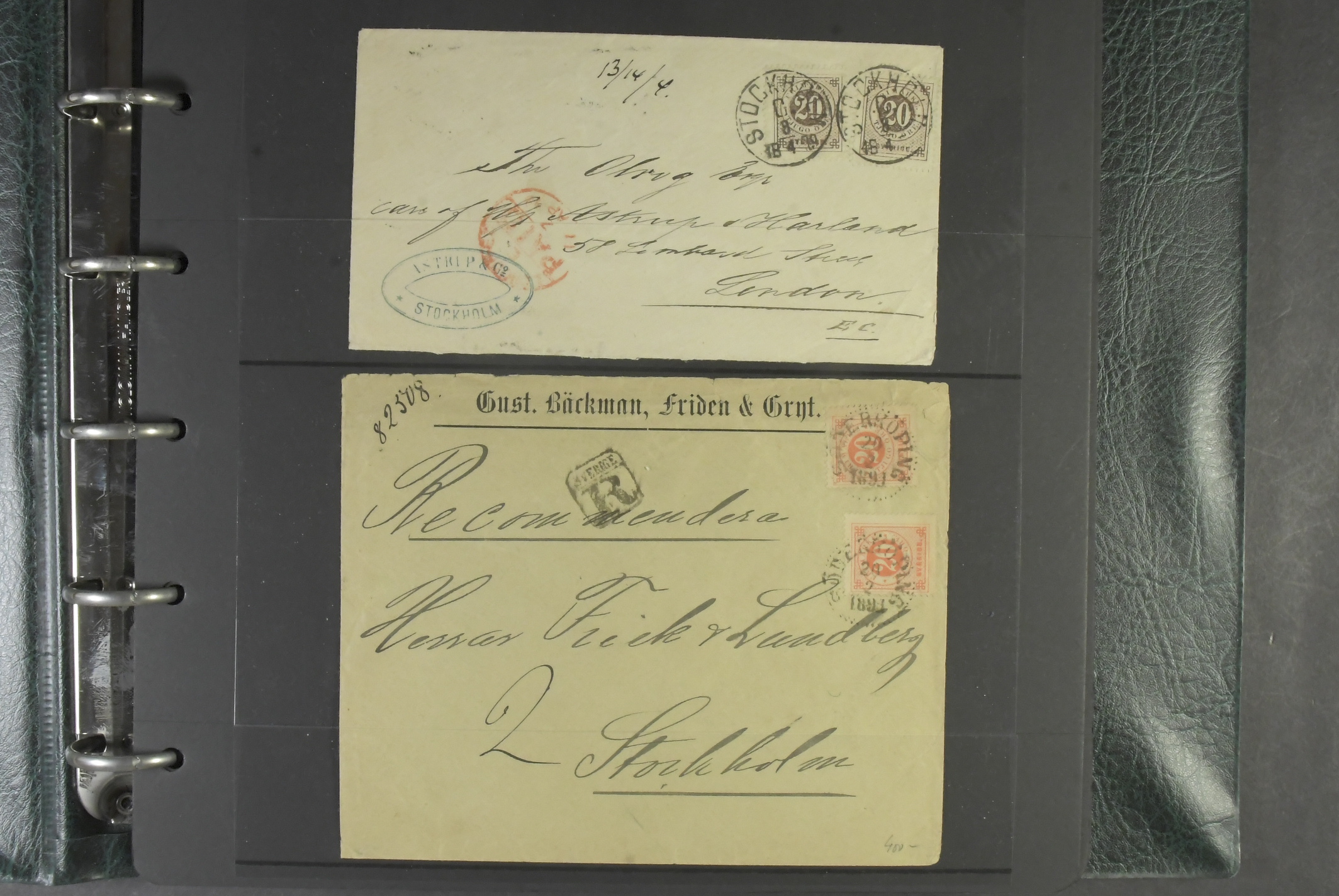 Sweden. Collection covers CIRCLE TYPE–OSCAR in visir album. Interesting mix of covers, cards, high weight class printed matter mail incl. several with F53, additional services, foreign destinations incl. Canary Islands, China, Egypt, Japan, Romania and South Africa, postal forms, etc. The entire lot is presented at www.philea.se. Somewhat mixed quality. (29)