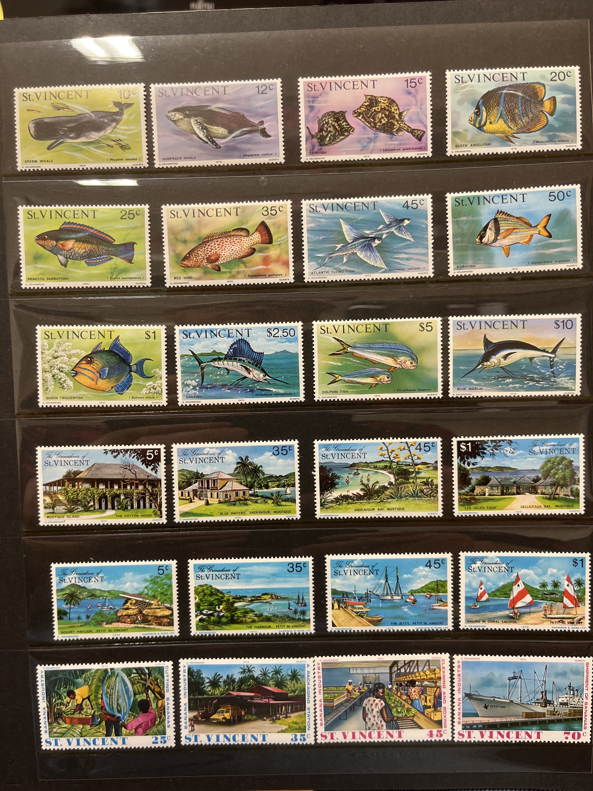 ALL WORLD. Lot ★★ Most 1960–1980s in box with seven albums. From Japan but also from e.g. Canada, Monaco, BRD, Switzerland and Malawi. Approx. 11 kg.