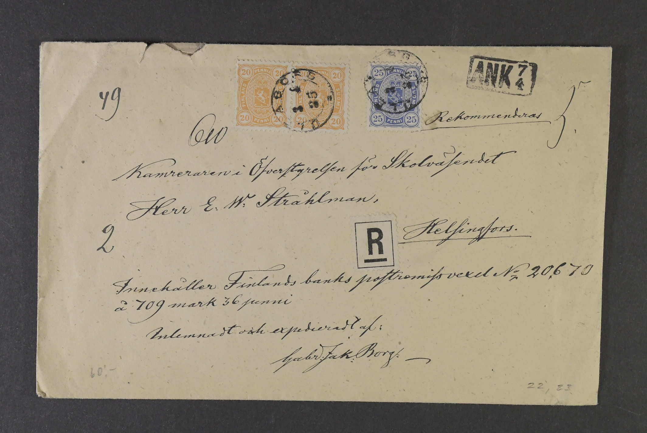 Finland. Lot covers. Seven covers 1867–1889, e g 8 p postcard + 5 p defect, 40 p on cover 1867, 5 p printed matter 1877, 20 p pair + 25 p on reg. cover 1885, 25 p on cover to Moscow 1889. Good quality.