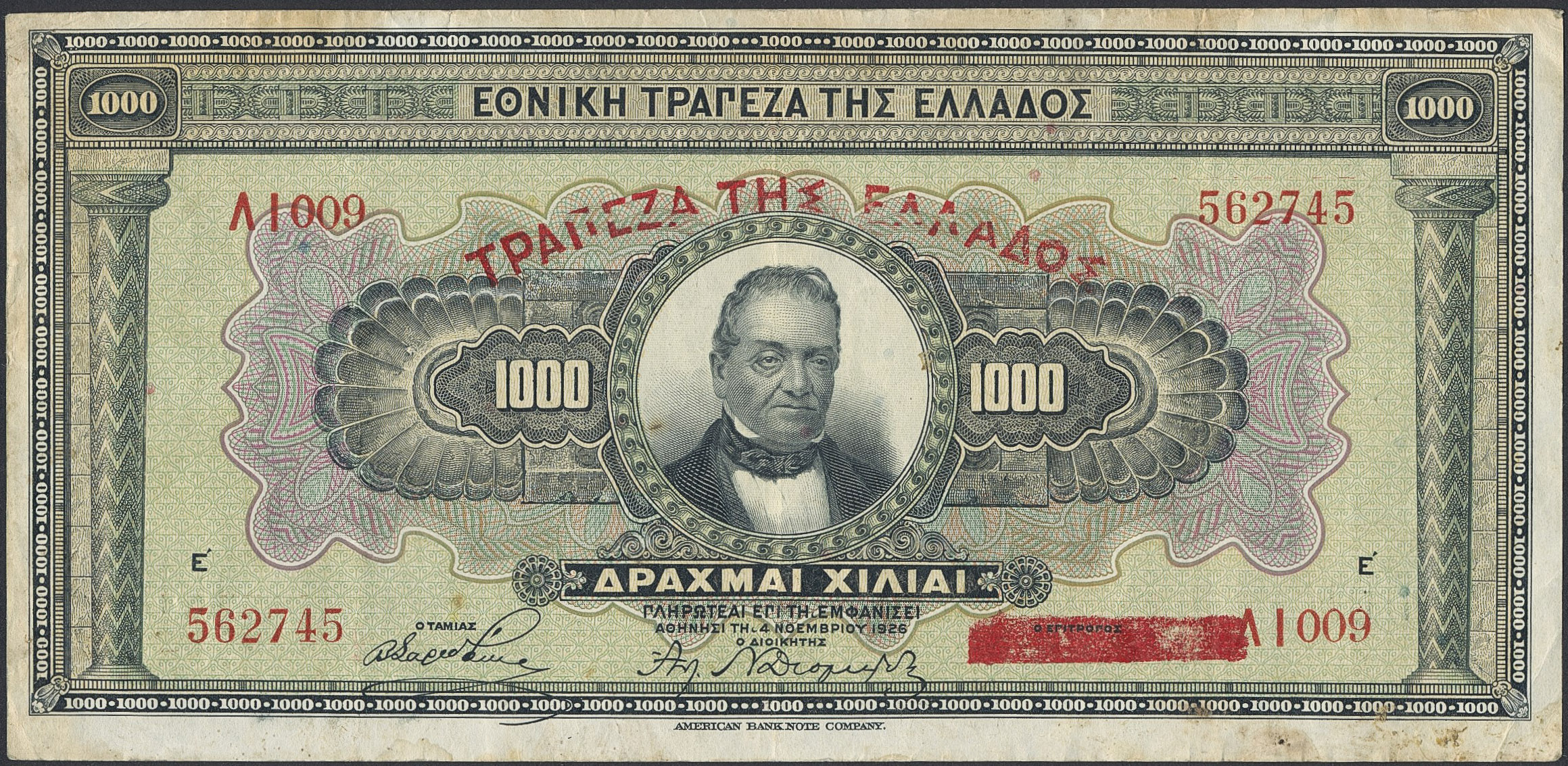 Banknotes, Greece. Pick 100 c, 1000 drachmai 1926. No: AI 009, 562745. F.