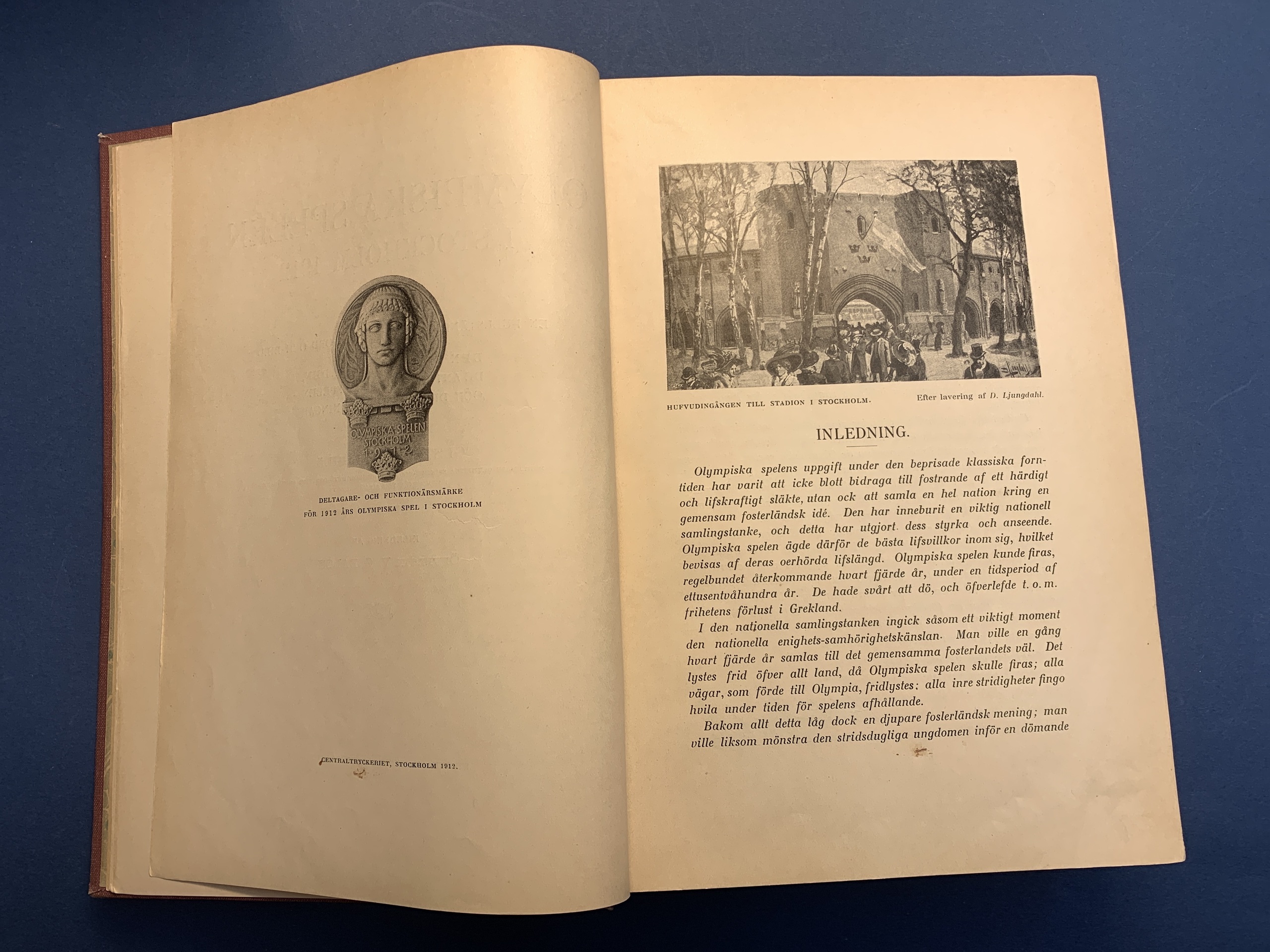 Olympic paraphernalia, Sweden. OLYMPISKA SPELEN I STOCKHOLM 1912, by Gustaf G:son Uggla, Stockholm 1912. 725 pages. Normally worn. Please see scans at www.philea.se.