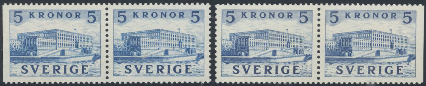 Sweden. Facit 332BC/CB ★★, 1941 The Royal Castle 5 Kr blue, pair 3+4 and 4+3. With wide margins.