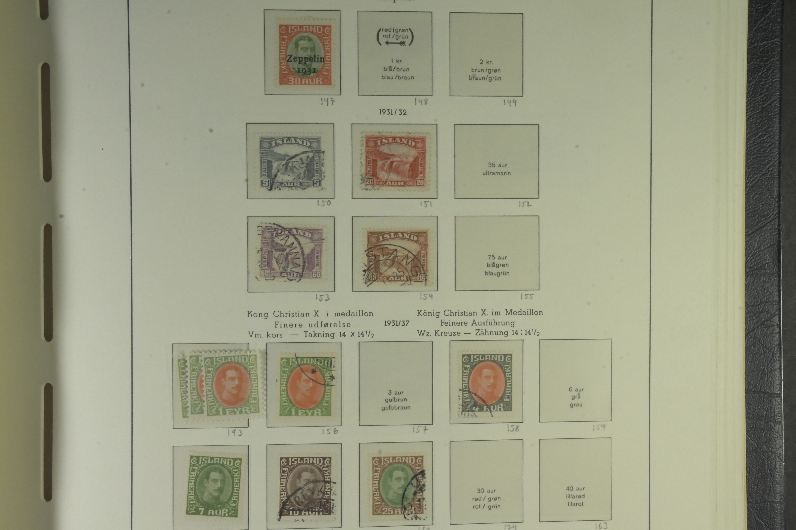 Iceland. Collection mostly ★★ 1873-1992 in Leuchtturm album with stamp mounts. Blue album as new .Several sets and souv.sheets.. Mostly good quality. (600)