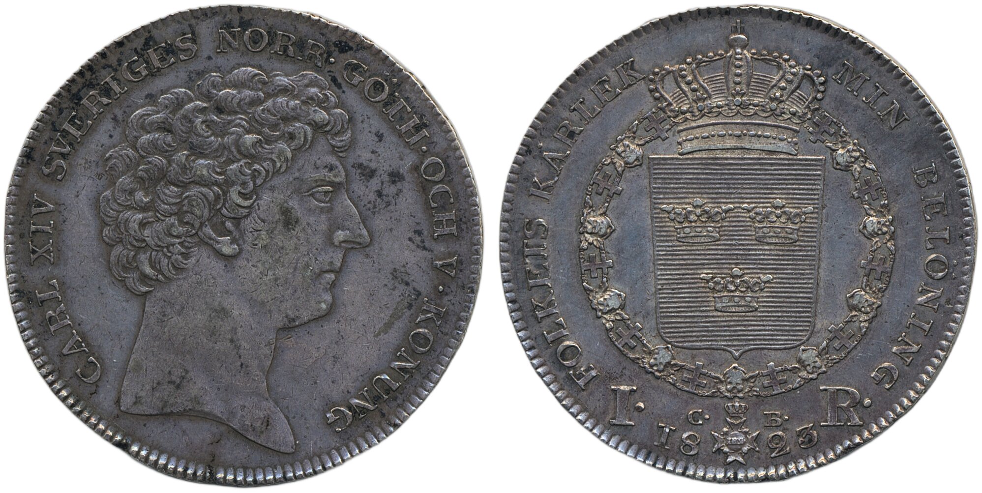Coins, Sweden. Karl XIV Johan, SM 45b, 1 riksdaler 1823. 28.98 g. Stockholm. 1+)(1+/01.