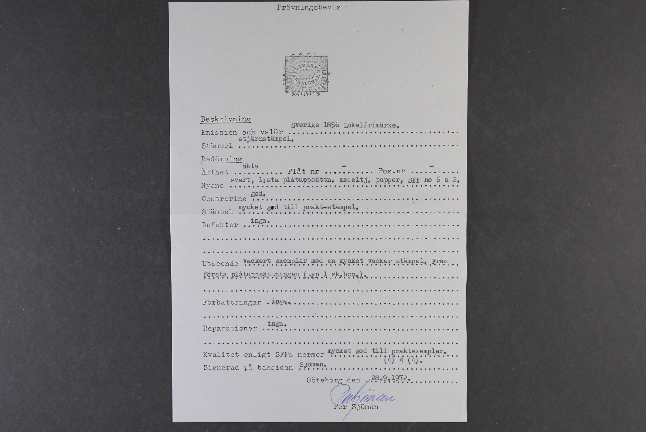 Sweden. Facit 6Ab used, (1 skill) black, medium-thick paper. Very fine–superb. Certificate Sjöman (4) 4 (4) (1972). SEK 4000