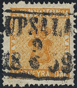 Sweden. Facit 10a used, 24 öre dark orange. EXCELLENT cancellation UPSALA 9.6.1859. Very scarce shade in this quality.