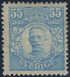 Sweden. Facit 92Bz ★, 55 öre light blue wmk KPV. Certificate HOW 3, 3, 4 (1990). Ex. Contenta. SEK 22000