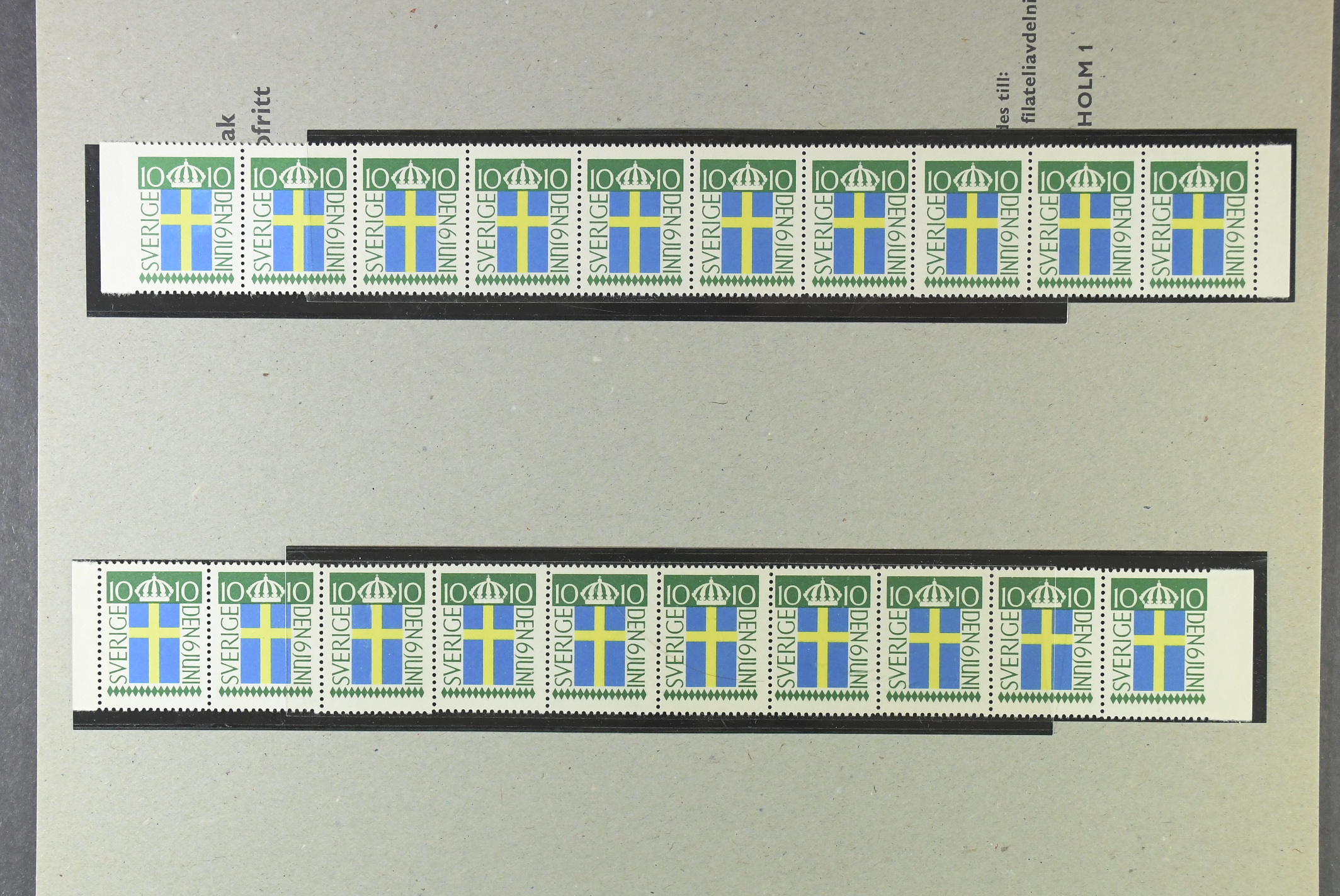 Sweden. Facit 469 ★★, F 469, two strips of ten with the end stamp imperforated on the right and left side, respectively. SEK 14000