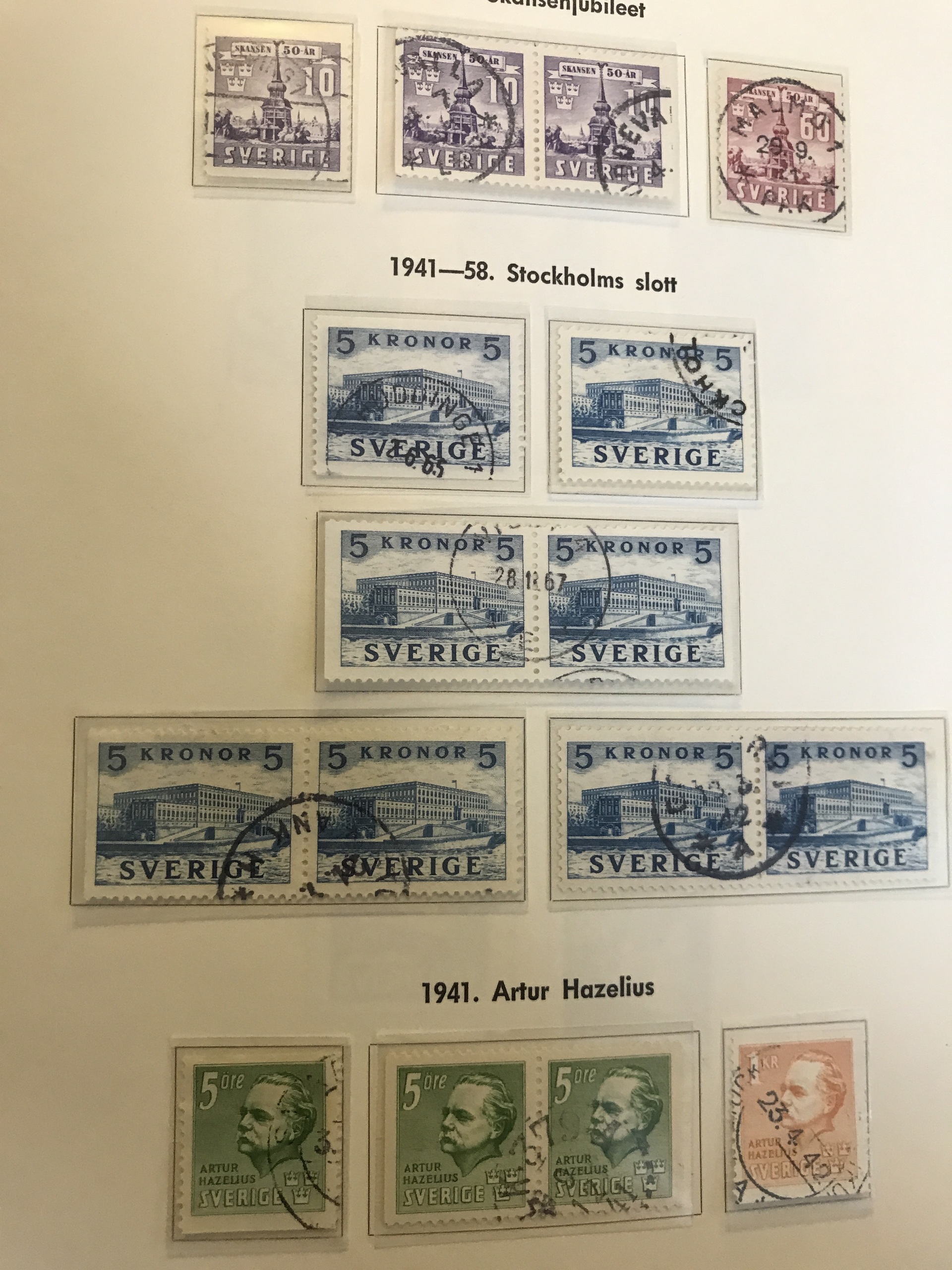 Sweden. Used. Collection 4 Skill–1971 in two Gripen albums incl. e.g. def. 24 Skill, Black local stamp, overcomplete Coat-of-Arms and nice Circle types, F15, cpl Landstorm, Congress and UPU, some officials and many beautiful cancellations, etc. Please see a selection of scans at www.philea.se.