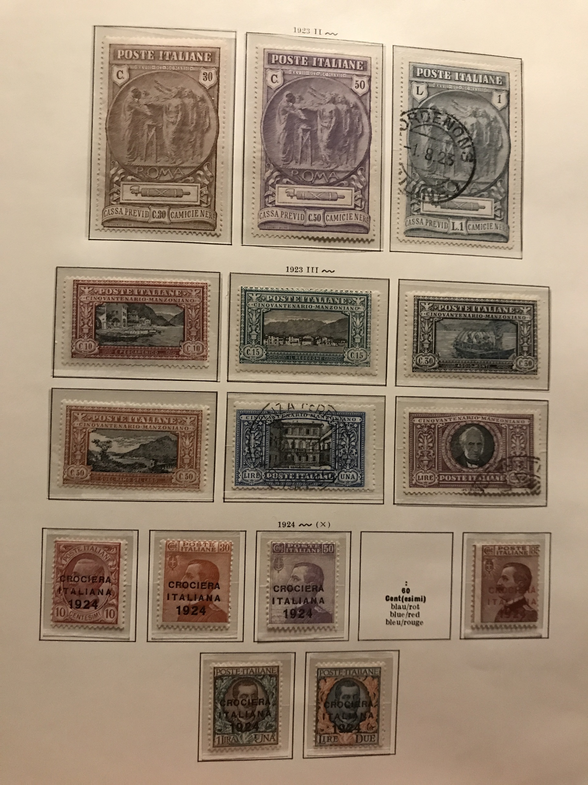 Italy. ★★/★/⊙. Collection 1861–1993 in three Schaubek albums incl. better early issues, two sets Mi61–66 and further e.g. Mi188–93, 201–16, 318–57, 452–68, 570–90, 740–859 mostly */o and a very good section back-of the book. With few exceptions cpl. from 1938–92. Please see a selection of scans at www.philea.se. Approx. 7 kg.