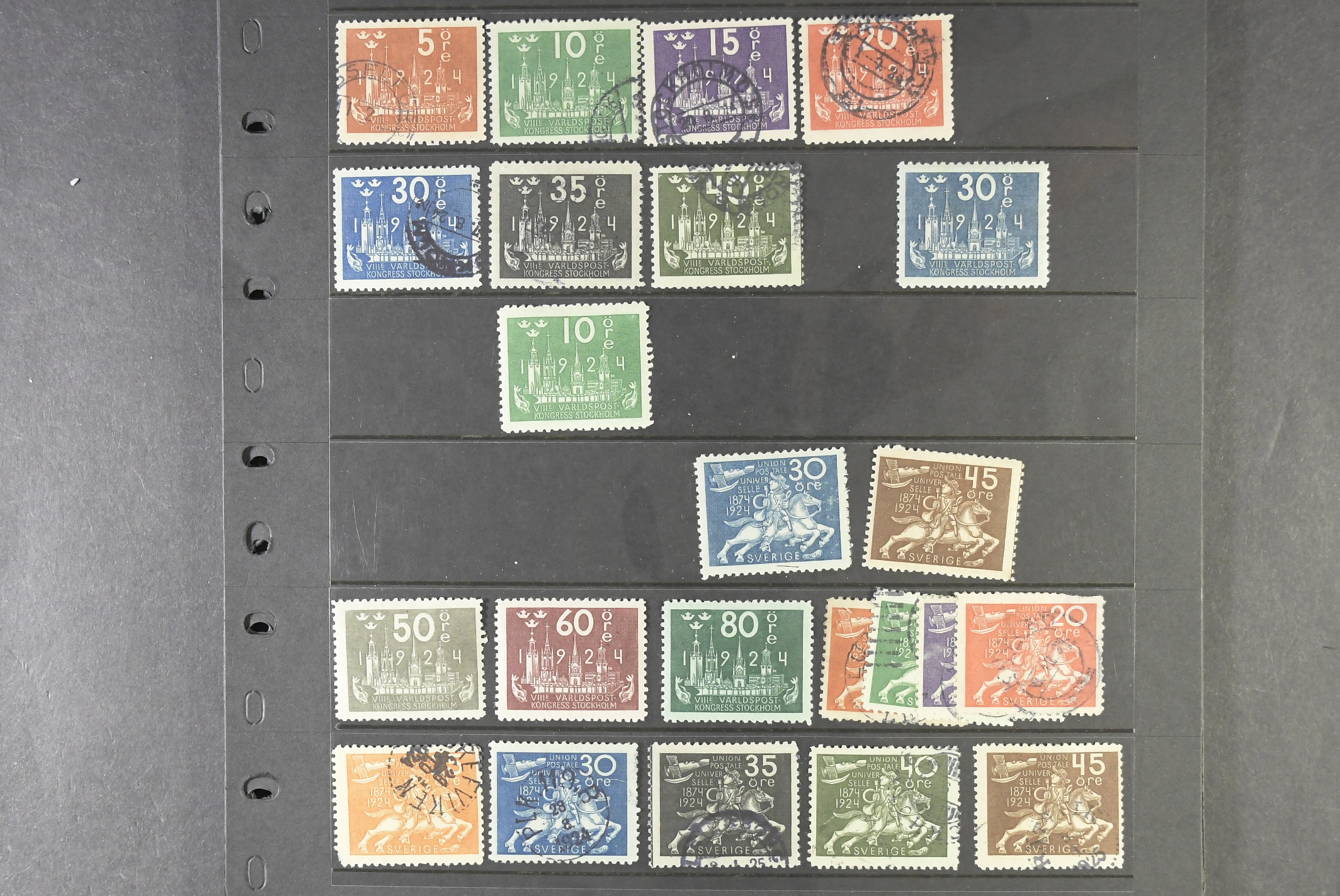 Sweden. Collection ★★/★/⊙ 1924 on visir leaves. Duplicate lot incl. e.g. 9×F208, 6×209, 4×223 and 6×224. Ex. Contenta. Somewhat mixed quality. (240)