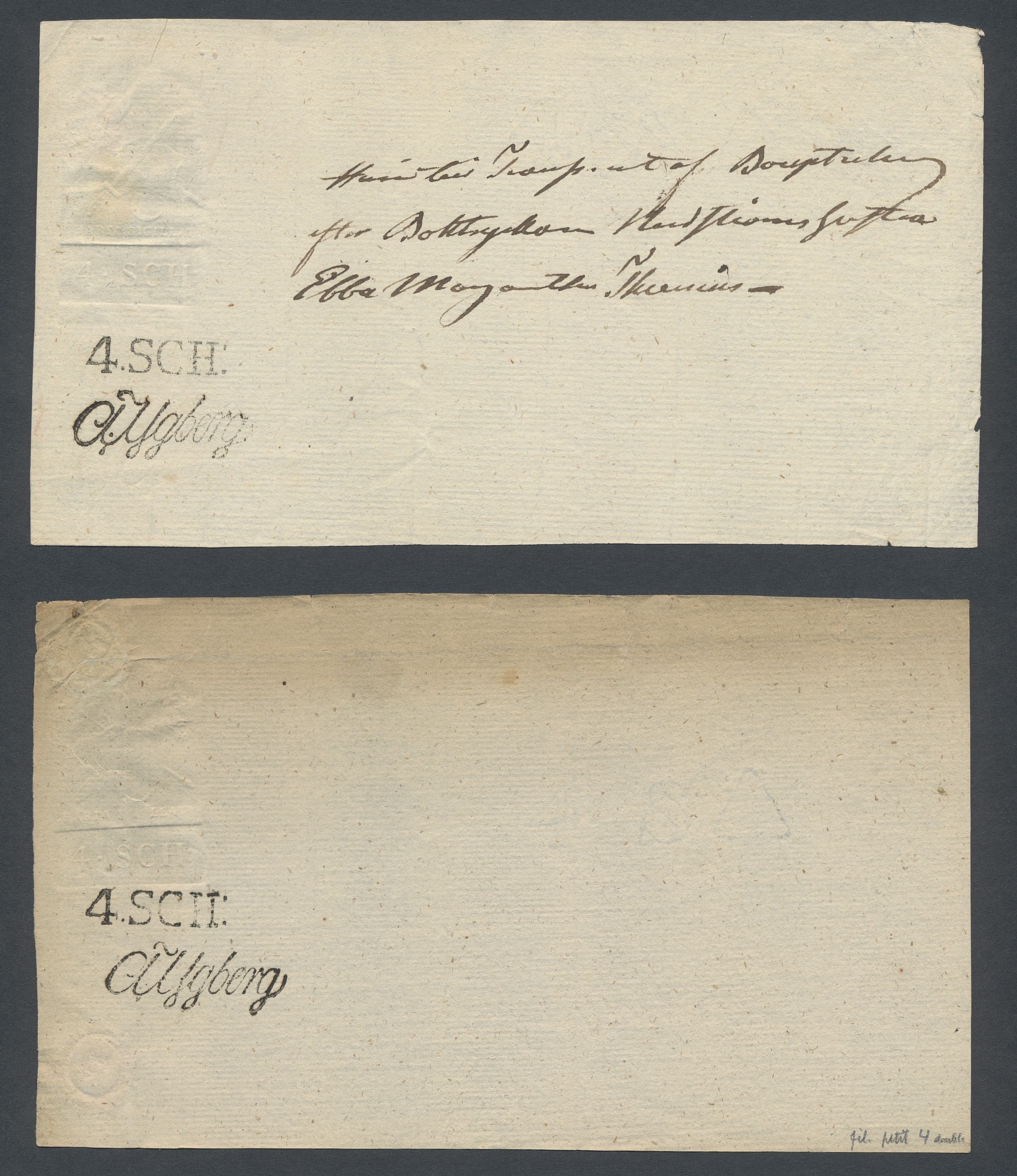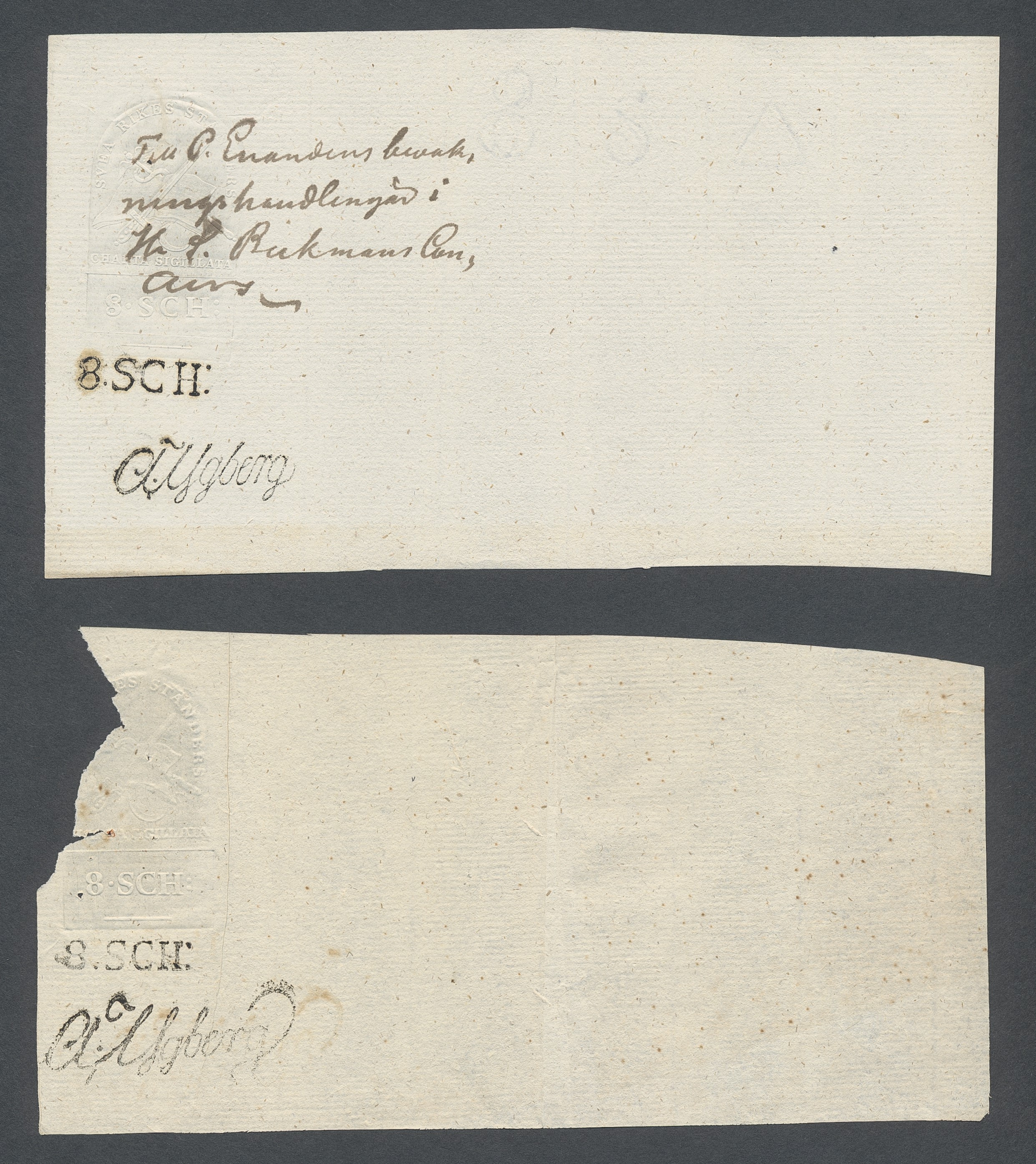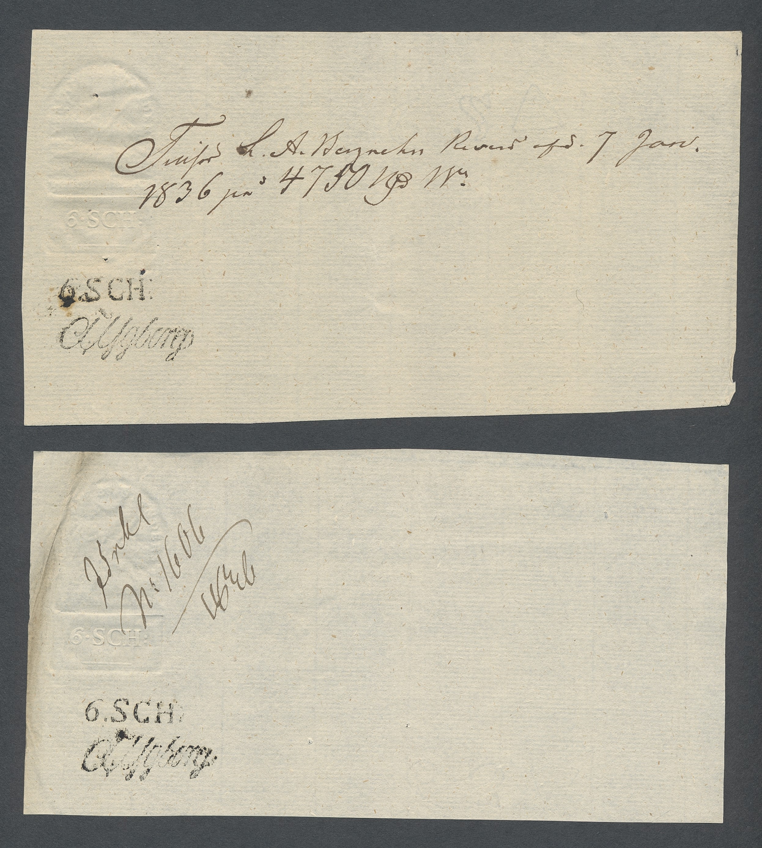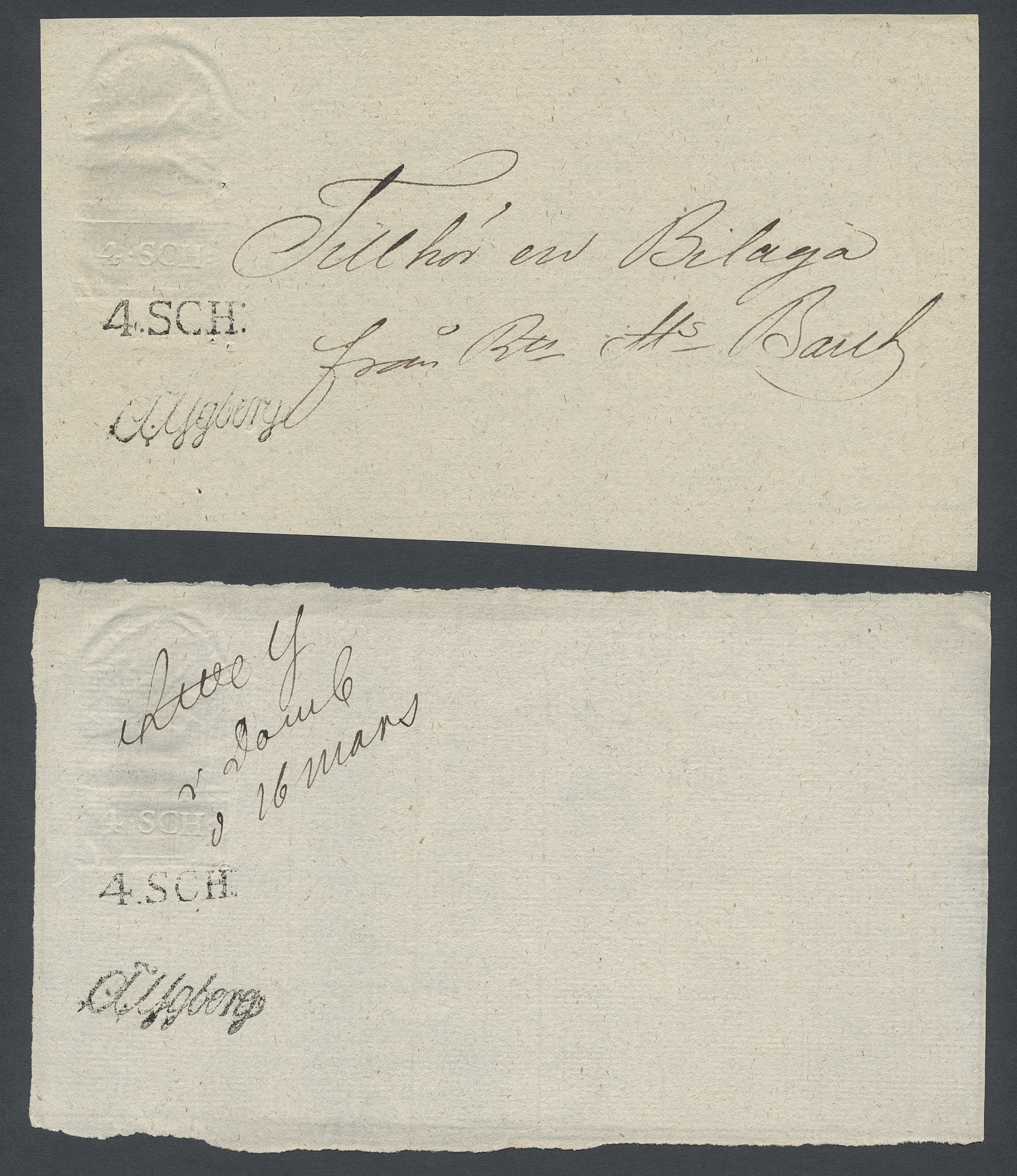 Sweden. Revenues, collection 1811–1844 in two albums. Documentary stamp, 1811 edition. Ygberg nameprint. Extensive collection 3 sch–50 Rd, just missing four denominations (32 sch, 1 1/3, 1 2/3 and 4 Rd). Specialized on watermark and paper with a large number of rare variants, e.g. mirror positions. 174 items in total incl 15 denominations graded as "R" in Facit 2015. A compilation nearly impossible to obtain. The cat. value exceed 40000 SEK with a substancial premium for the variants. A list of the content and pictures of almost the entire lot are presented at www.philea.se. Ex. Per Sundberg. (174)