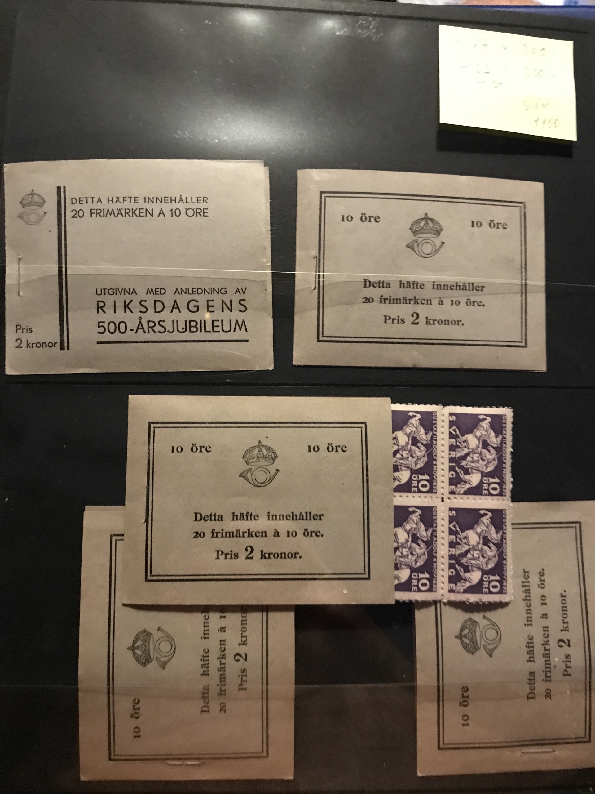Sweden. Booklets. Two Visir binders with about 210 booklets mainly 1932–72 incl. 22 handmade. Containing e.g. four H23, six H24, one H27, three H28, 29, 31, five Swedenborg incl. four CB, H35C. Further e.g. H60 and 70 and some slot-machine booklets. Please see a selection of scans at www.philea.se.