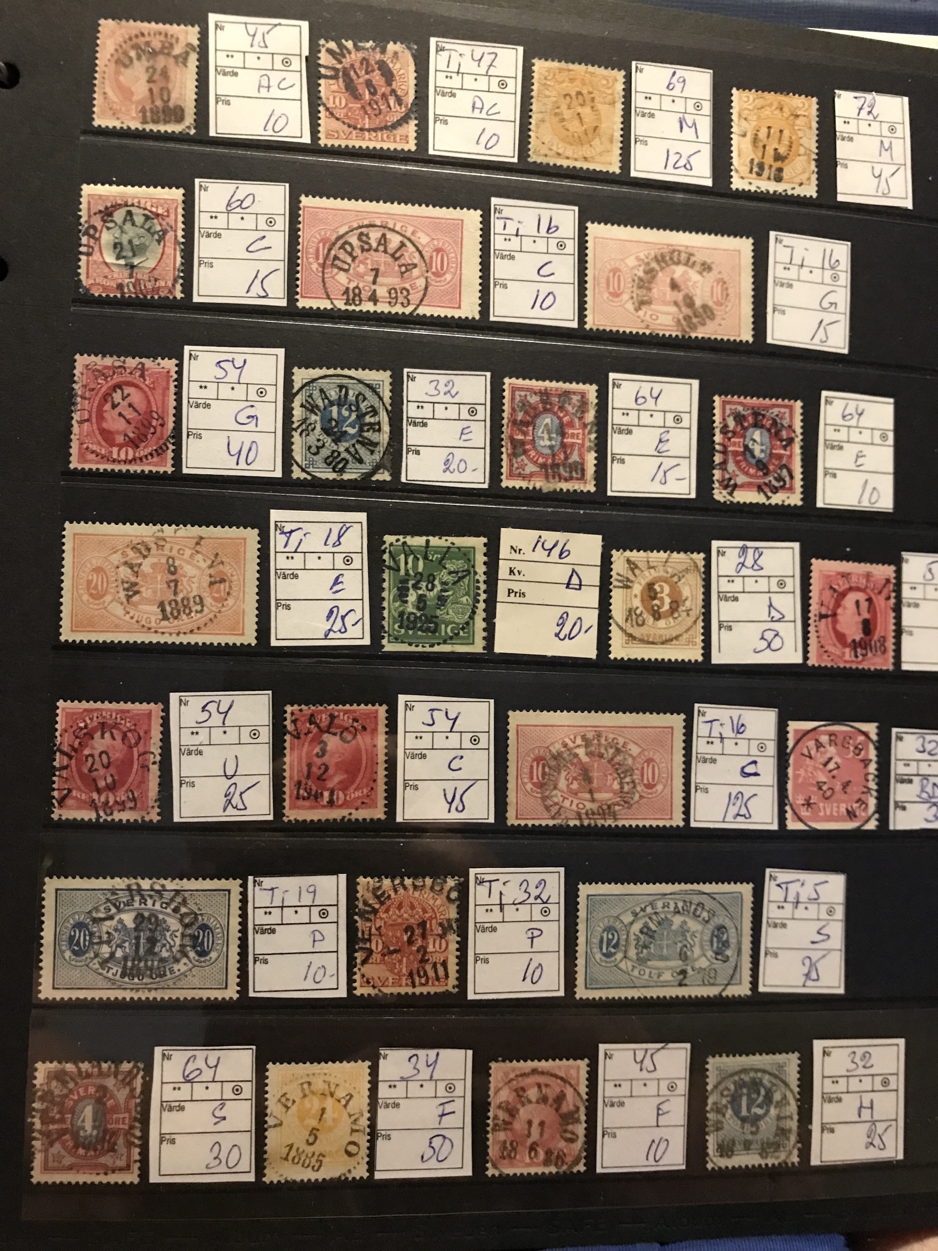 Sweden. Cancellations. Visir binder with >900 mainly price marked cancellations Coat of Arms–modern incl. many superb–excellent and small communities. E.g. Kalfsvik on Circle type, Dänningelanda, Rösmåla and Ronneby Redd on Oscar. Please see a selection of scans at www.philea.se.