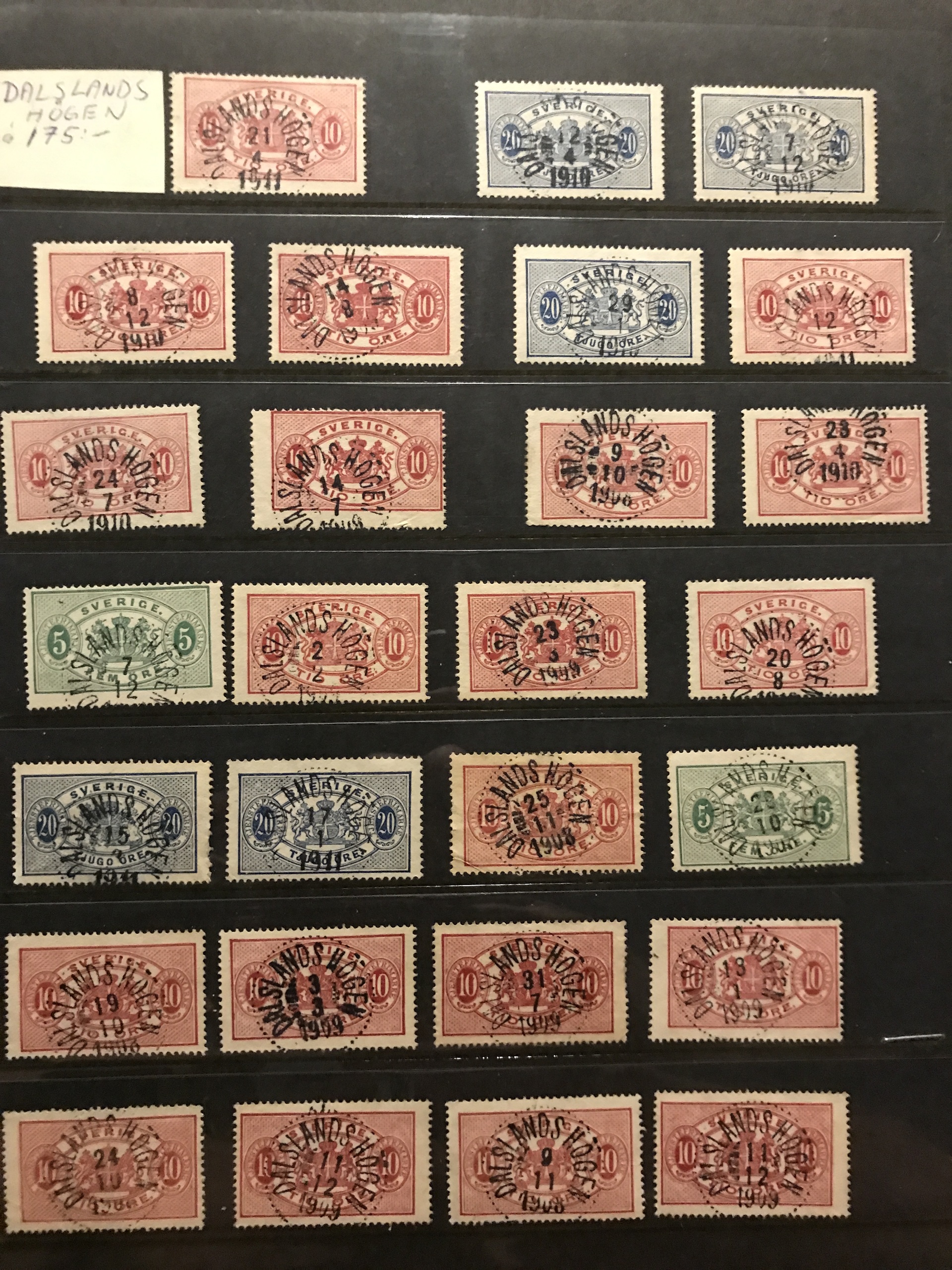 Sweden. Cancellations. Two visir binders with approx. 2900 cancellations P+R counties mostly 1860s–1970s incl. many beautiful and also better ones, e.g. about 125 Dalslands Högen on 10 öre large official stamps. Please see a selection of scans at www.philea.se. Ex. Contenta.