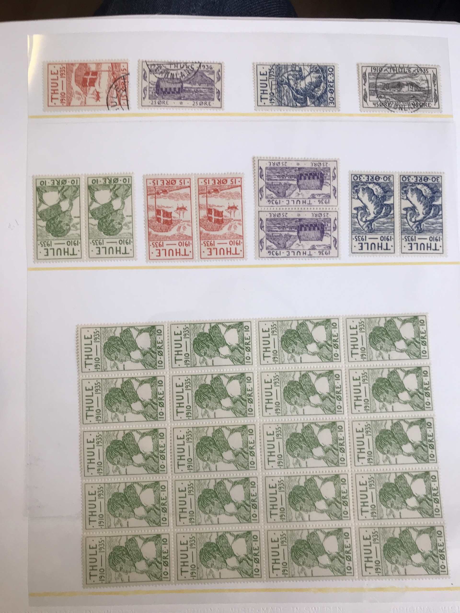 Greenland. ★★/★/⊙. Lot 1915–56 on visir leaves incl. e.g. four * sets Various Designs 1945, nine F33, 60 copies Thule incl. 10 øre in ** block-of twenty, etc. Facit ca 32000. Please see a selection of scans at www.philea.se. Fine quality.