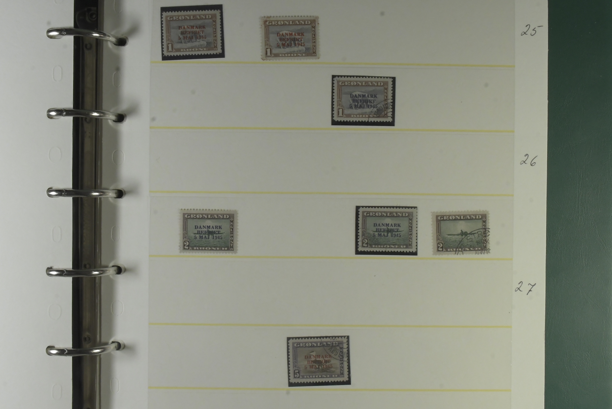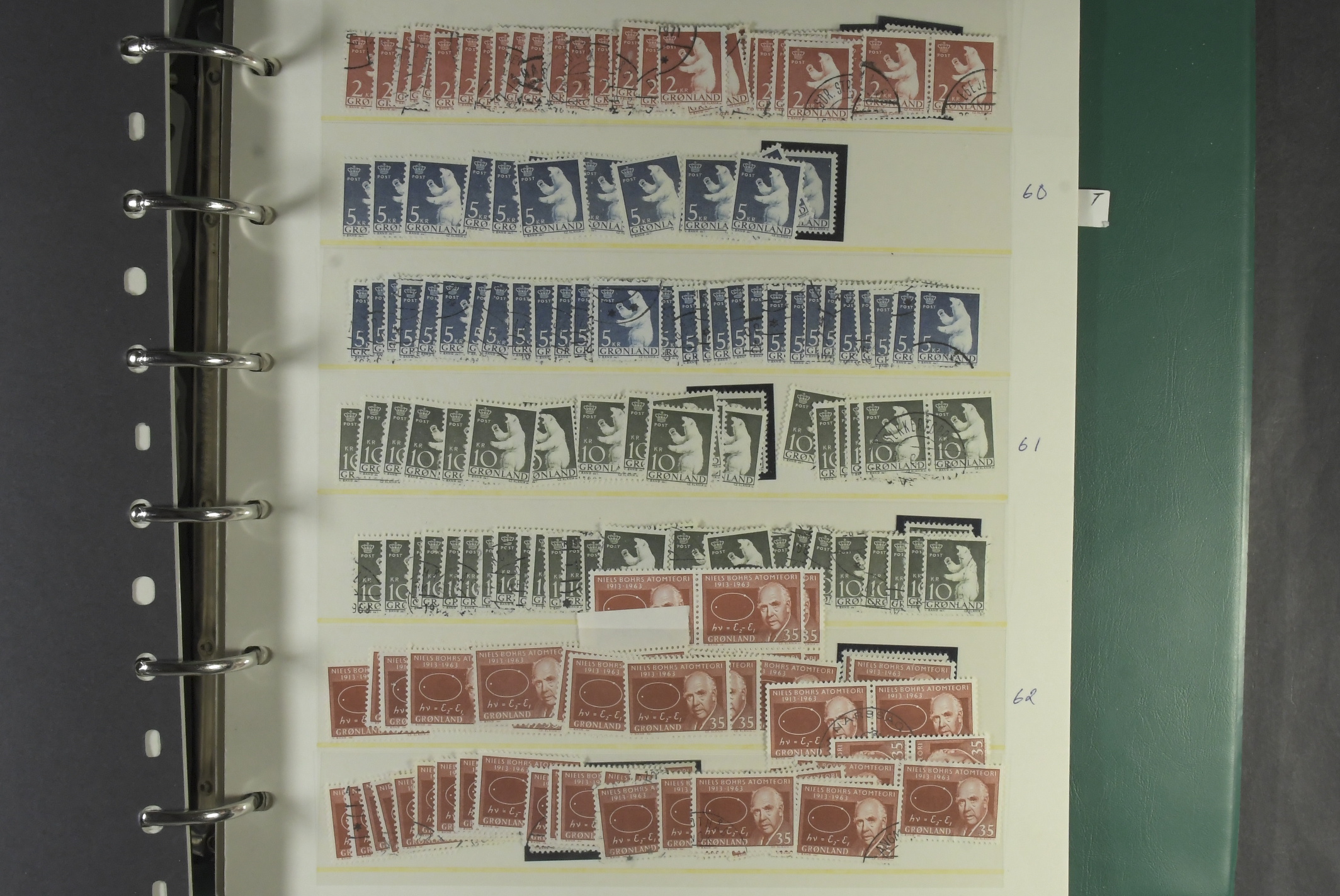 Greenland. Accumulation ★★/★/⊙ 1905–1984 in two thick visir albums. Dealer's stock. Good section Pakke-Porto with over 150 stamps mostly mint or ** but also some used. Several sets of the America issue also some overprints incl. wrong colours. 1938 to the end in large numbers both ** and used. Ex. Contenta. Somewhat mixed quality. Approx. 5 kg. (1000s)