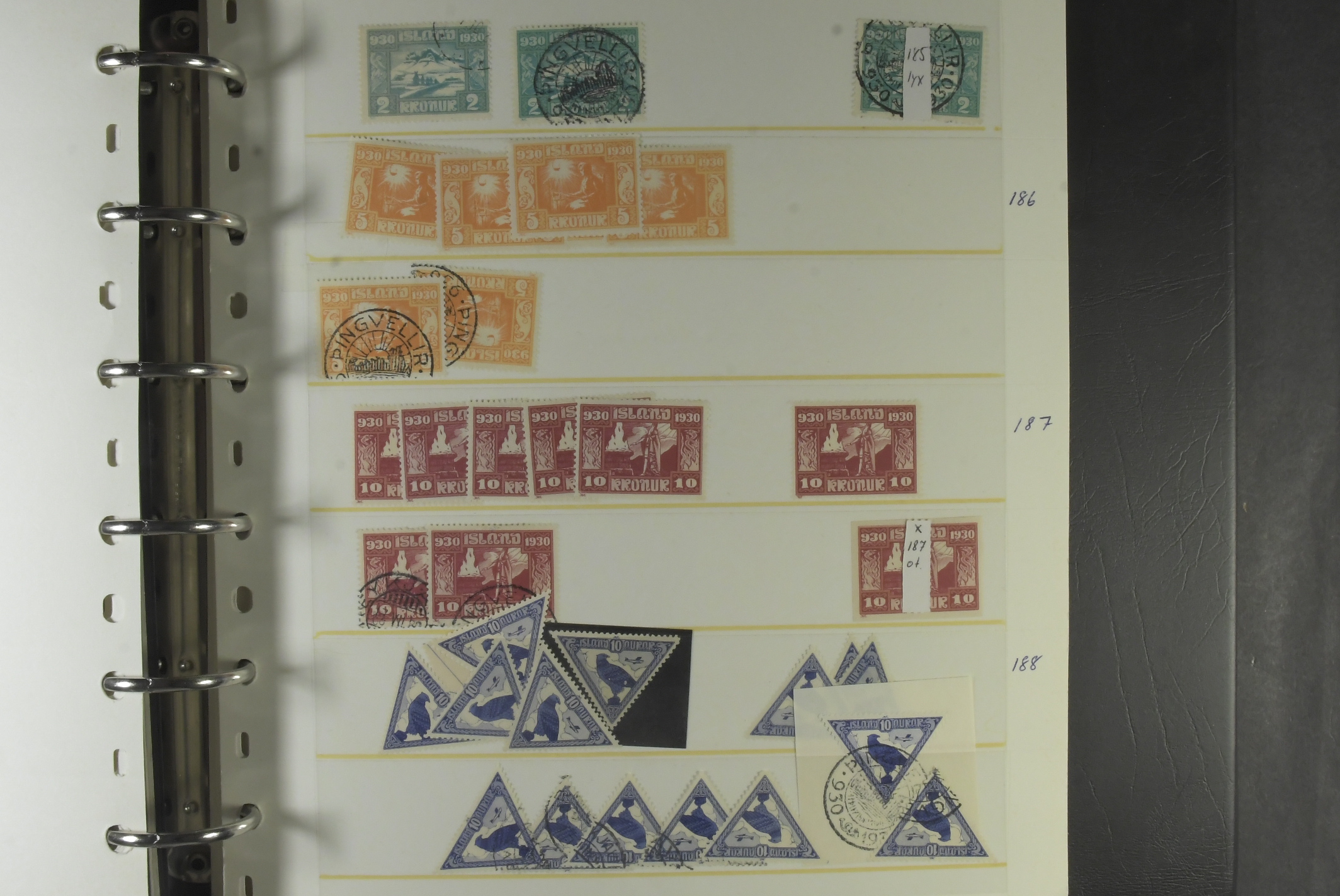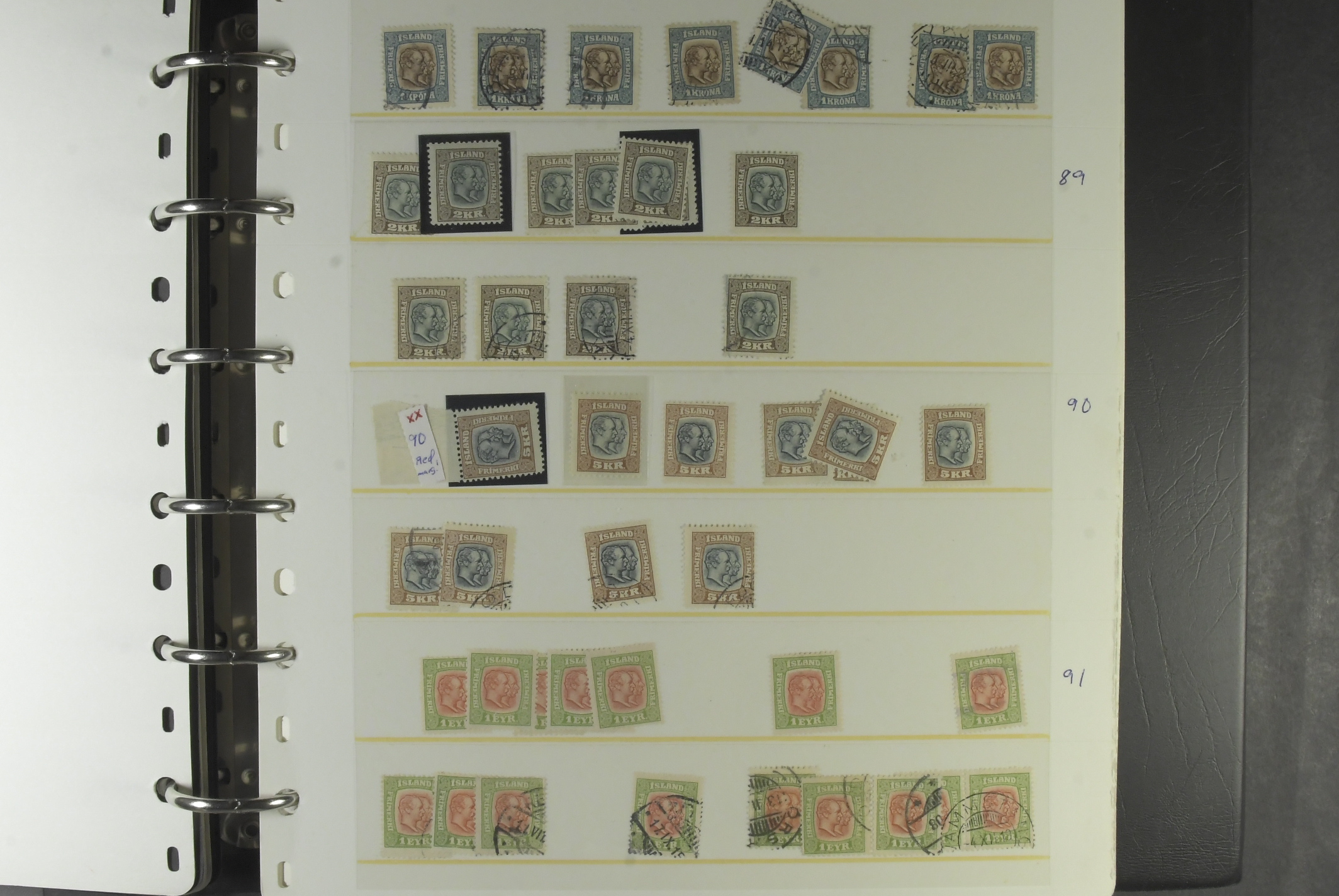 Iceland. Accumulation ★★/★/⊙ 1902–1934 in visir album. Dealer's stock King Christian IX–Air mail 1934. Well filled through the whole period, with many good stamps. Mint is usually min hinged but there is a good amount of ** mostty in units. Veiwing is recommended. Please see a selection of scans at www.philea.se. Ex. Contenta. Mixed quality. (1000s)