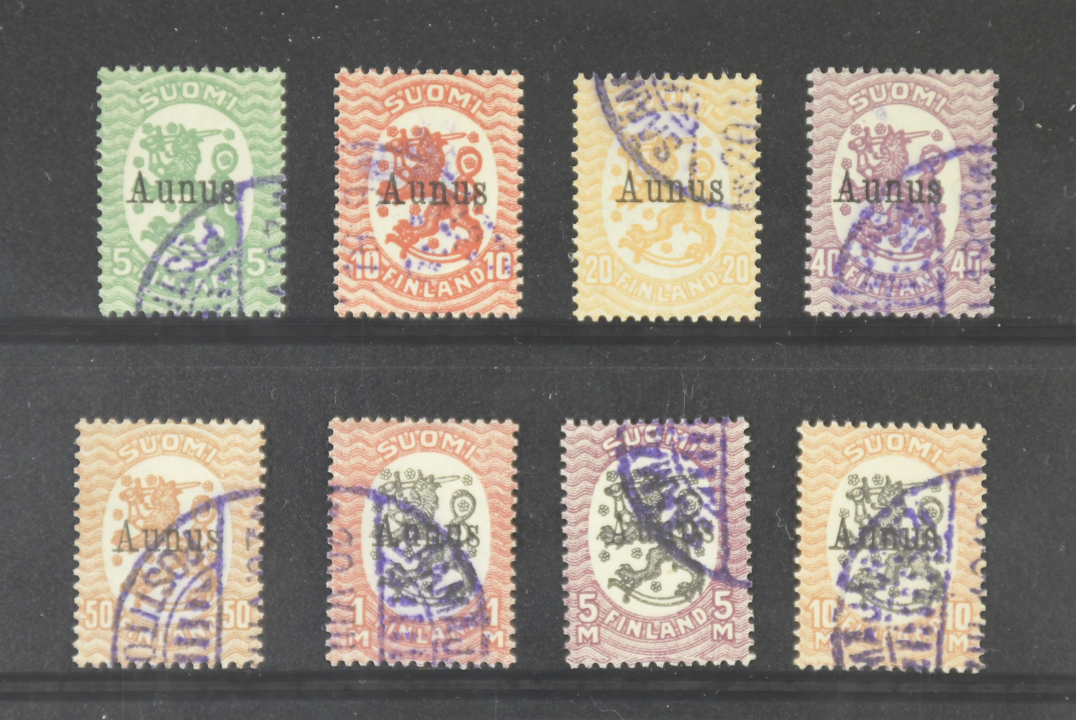 Finland, Aunus. Facit 1–8 used, Complete set signed Olamo. Ex. Contenta. SEK 27000