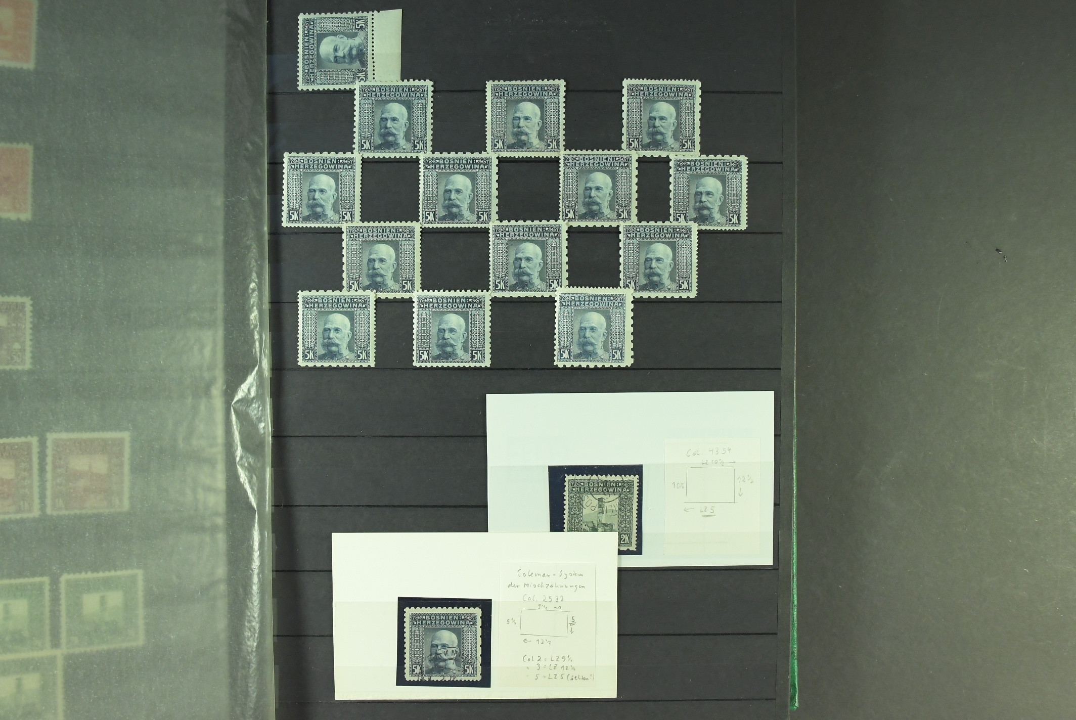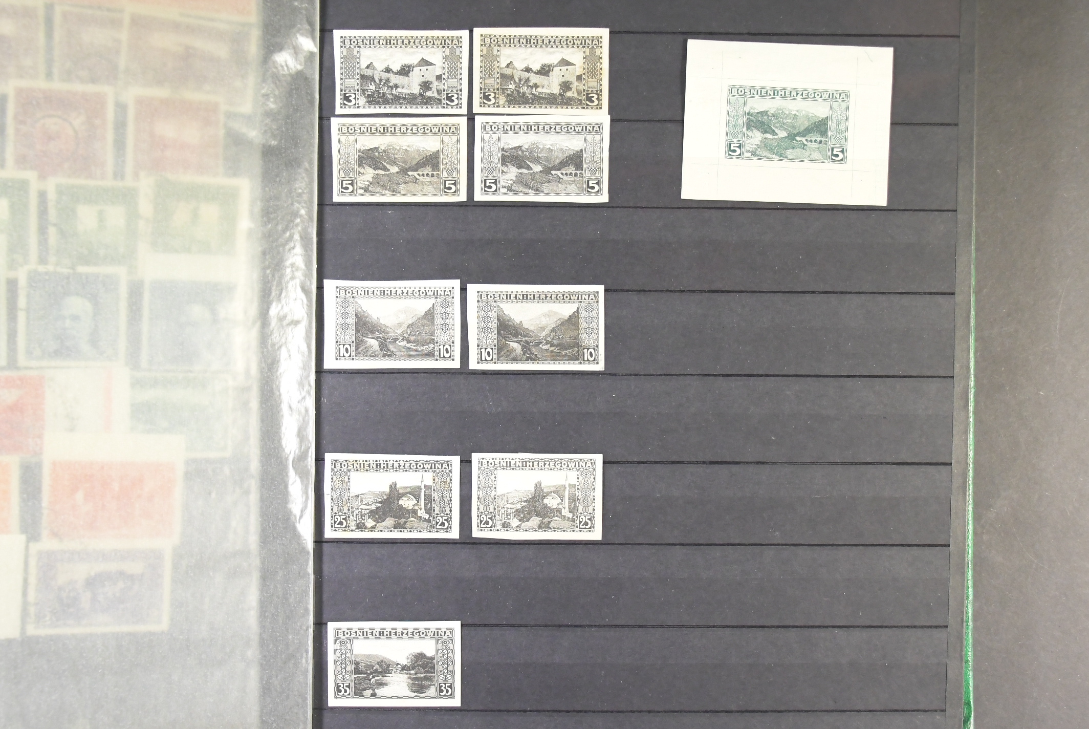 Bosnia and Herzegovina. Collection/accumulation ★★/★/⊙ 1906–1818 in stockbook. Amazing collection with a lot of scarce items. 1906 issues with perf. varieties incl. full sets of 9½ and compund in several different settings and imperforated as well both mint and used. There is also plenty of proofs in different printings. 1912 set in pairs one mint and one ** and also a proof of the 10 K, later issues with many varieties and also the unissued stamps of 1918 in pairs ** (some with faults). Viewing is recommended. Please see a selection of scans at www.philea.se. Mostly fine quality. (700+)