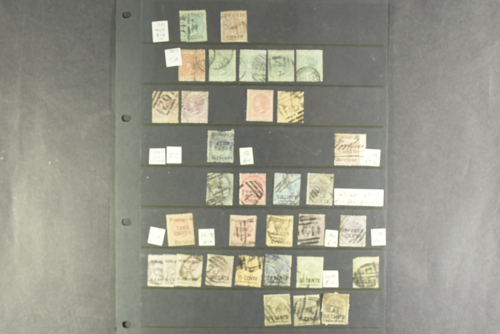 Ceylon. Collection used classic impressive collection primarily of QV, accompanied by some better EDVII and a little KGV on six sheets. Much of the value is in the used pence issues perf and imperf. There is also the key values 4 d and 9 d cut to shape, as well as the 2/- – of these early issues of 1857 there are well over 40 pence types, followed by a intense range of the overprint issues with huge potential here as well. Notwithstanding the cut to shape, the collection with catalogue many thousands of pounds, a recommended viewing.
