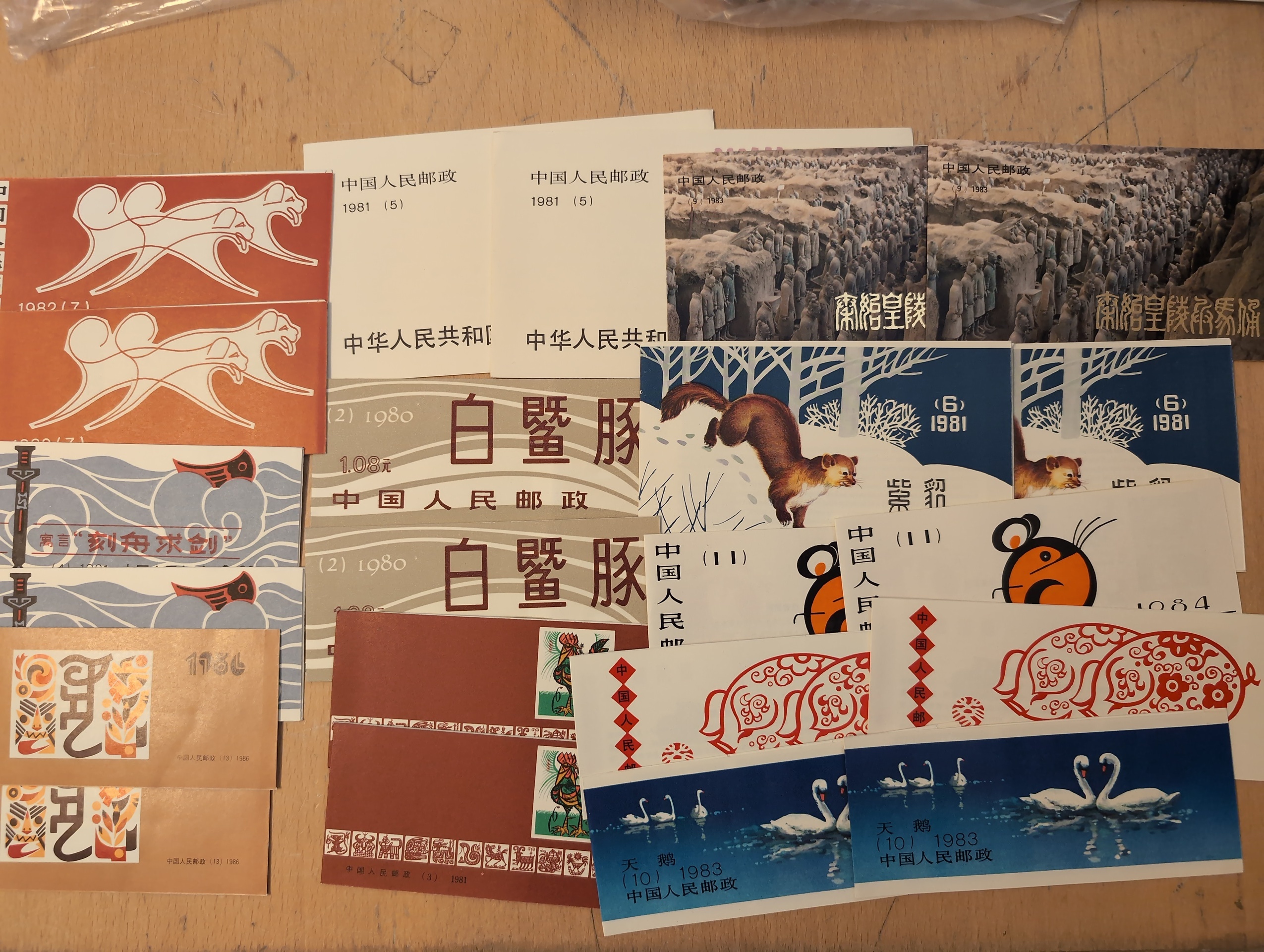 China, People’s Republic. Accumulation ★★ 1984–1992 in box. Huge stock of stamps in sheets or mostly part sheets. the earlier in sets of 10 and later sets of 100. We have not examined what is in here but there should be high completion. There is also some packets with 100 M/S e.g. T122, T135, T150, T174, J103 and J133. Other M/S are in less numbers. Excellent for dealer. Please see a selection of scans at www.philea.se. Fine quality. Approx. 12 kg. (10000s)