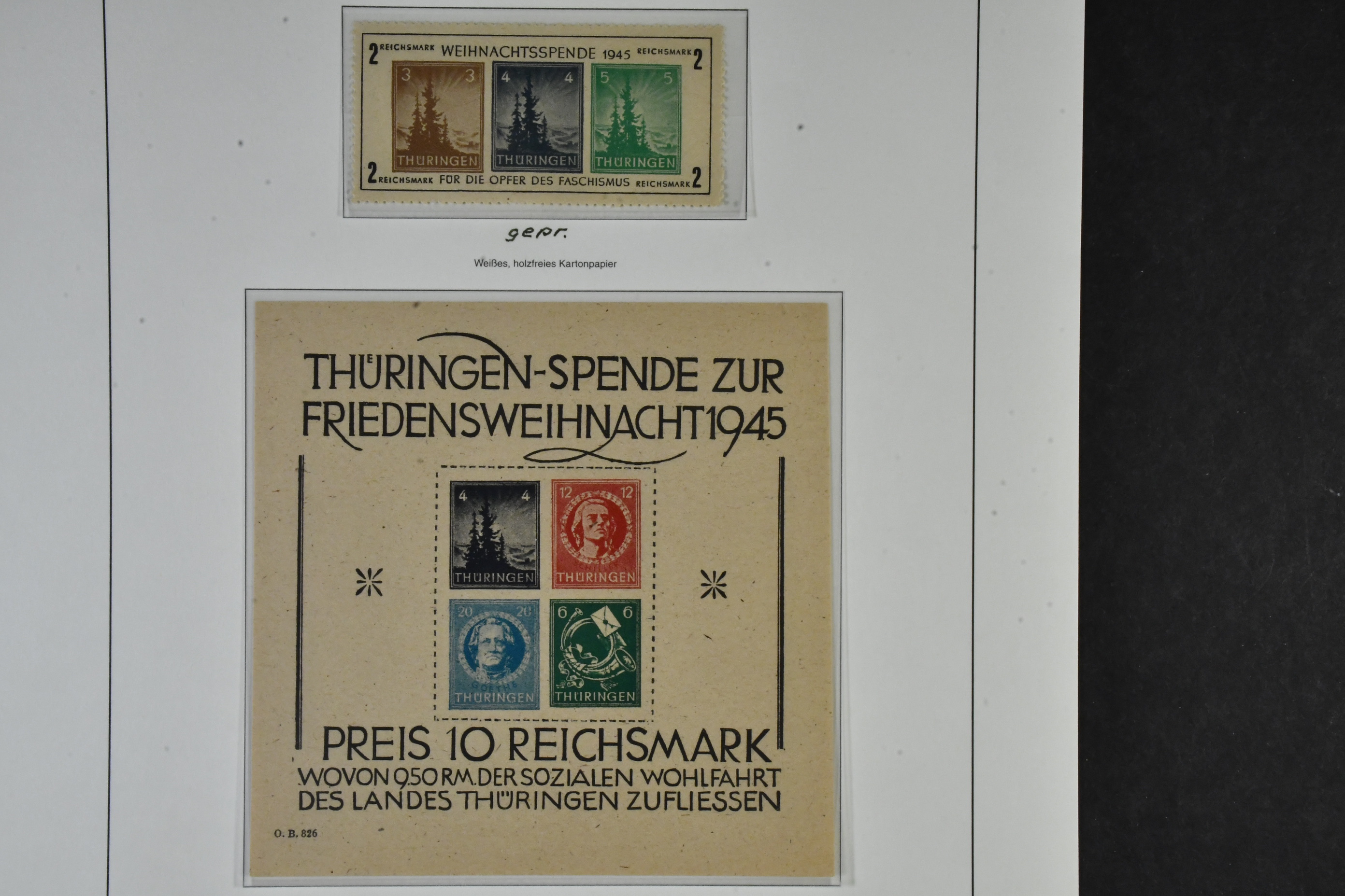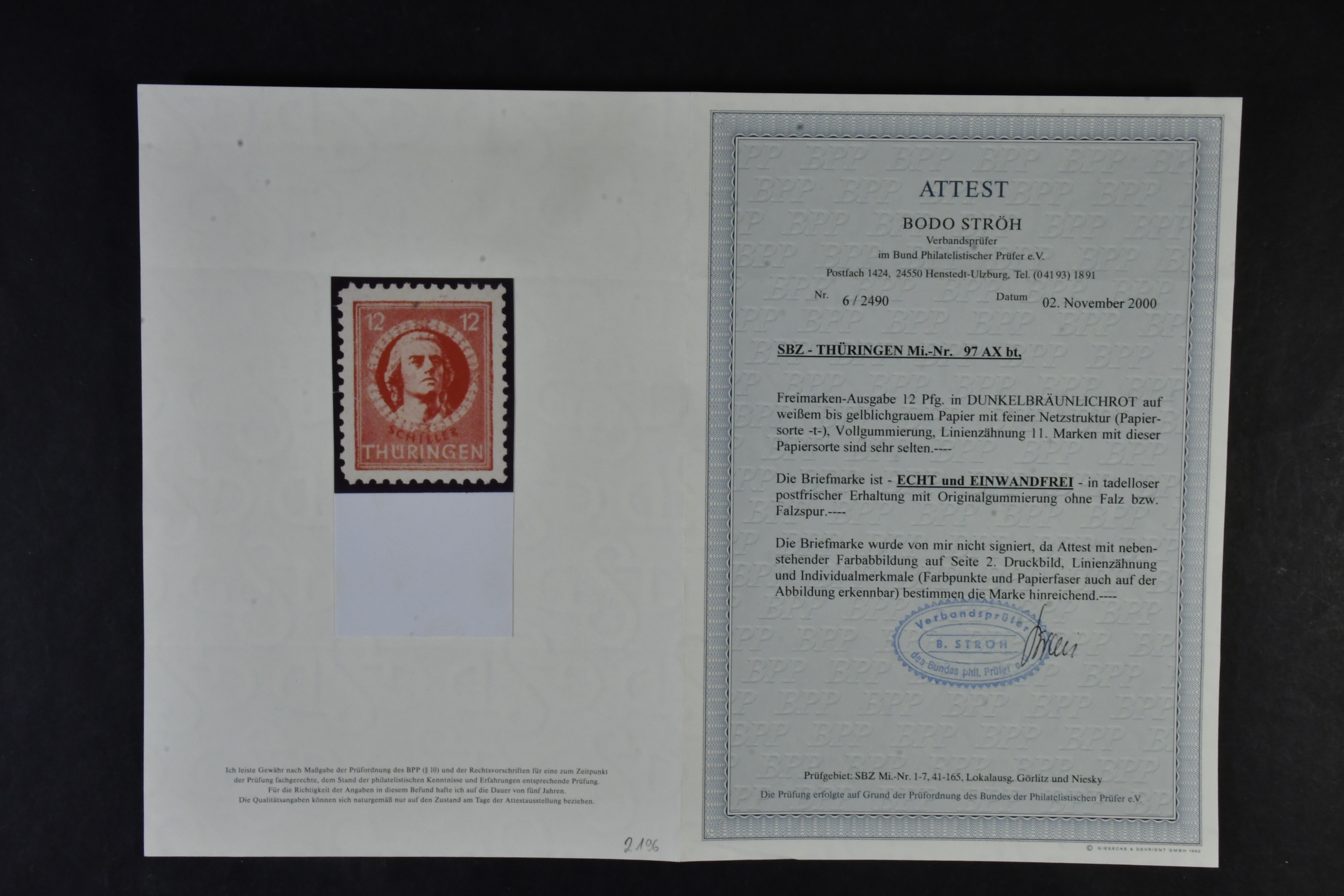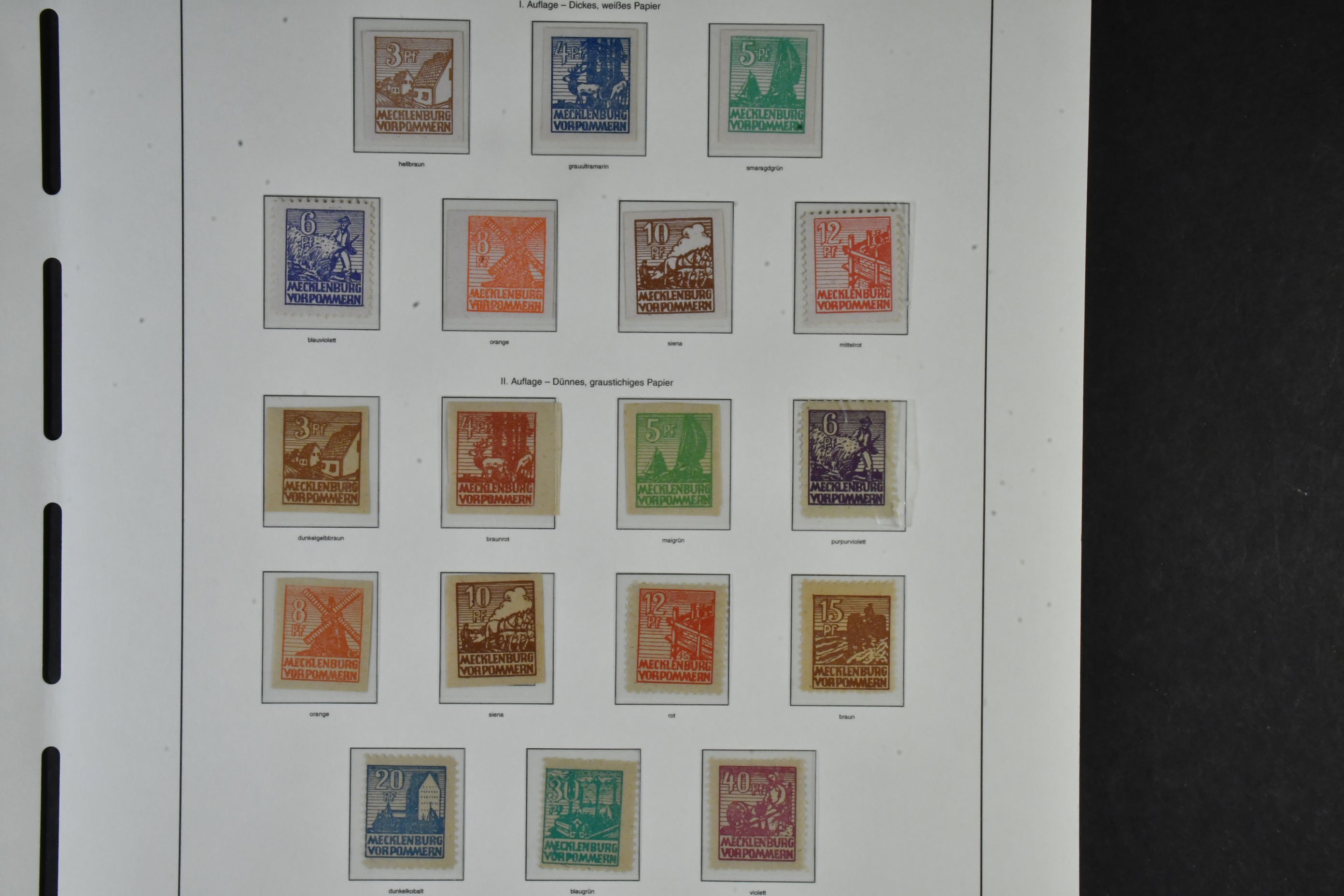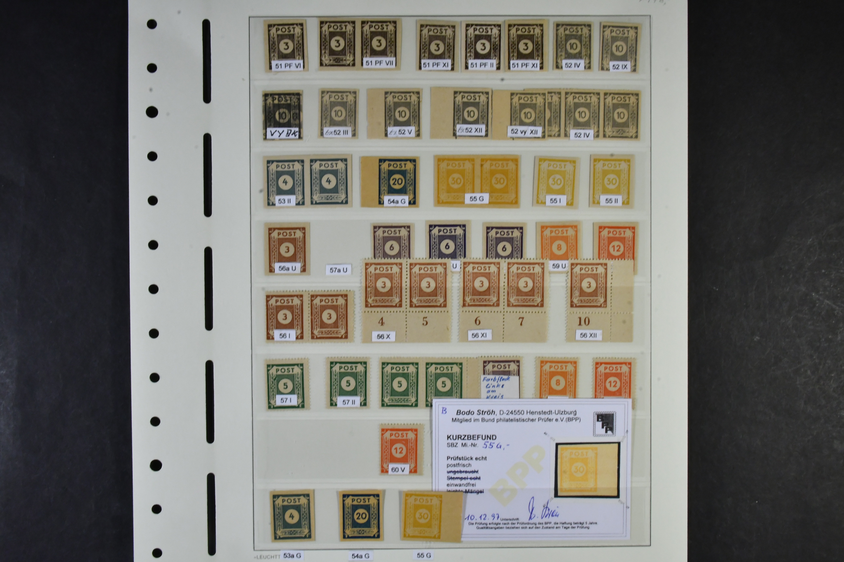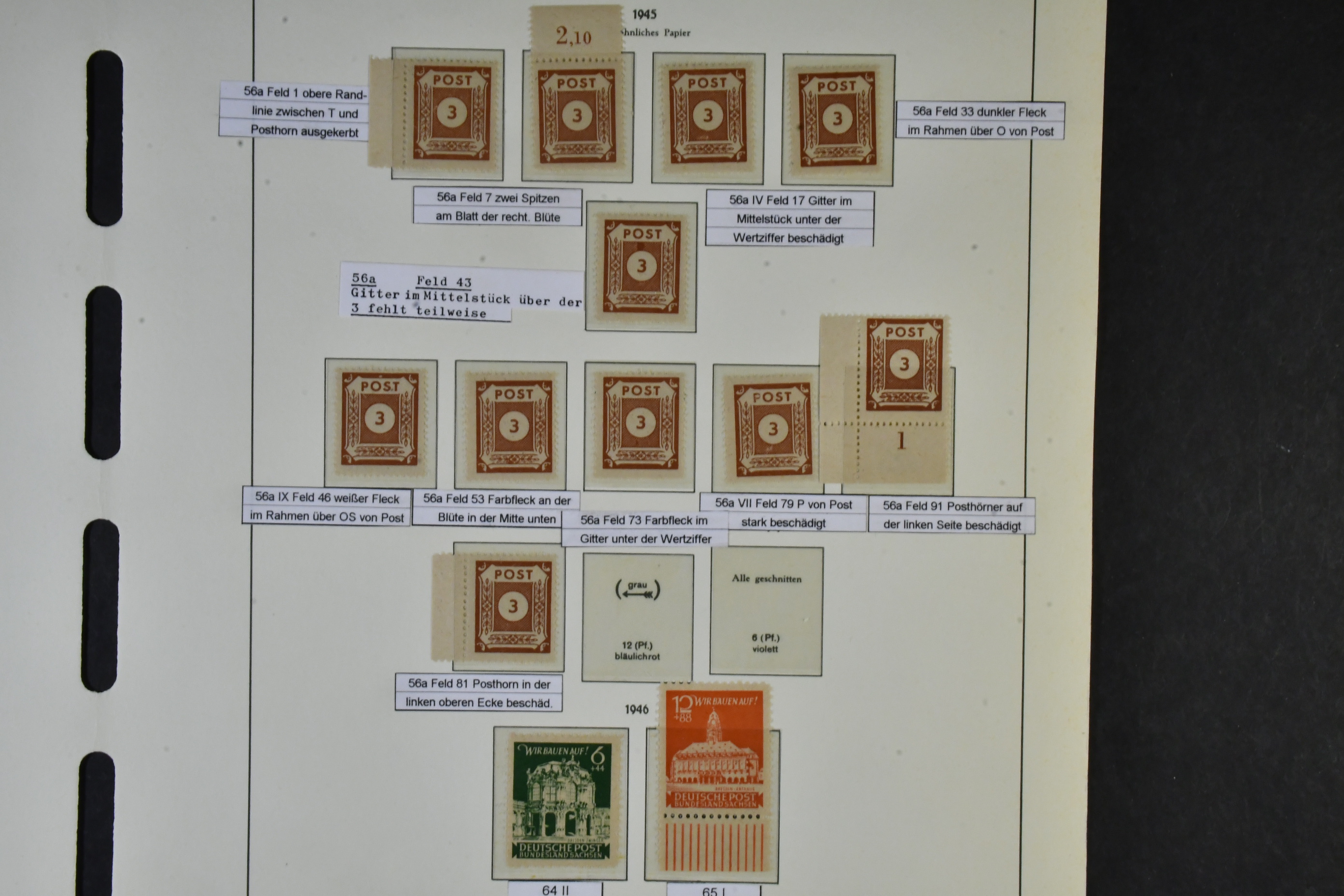 Germany, Soviet zone. Collection ★★ 1945–1949 in two albums with stamp mounts. With few exceptions ** and with all important issues and a wast amount of signed/certified colours and watermark varieties, printing signs, plate errors and varieties, all areas from Berlin-Brandenburg to the General Issues. The catalgoue value is close to EUR 90000 and cosidering the amount of really good material included, the reserve is moderate! The entire lot includes a description in German of some important items avaliable on our website. Fine quality. Approx. 6 kg.