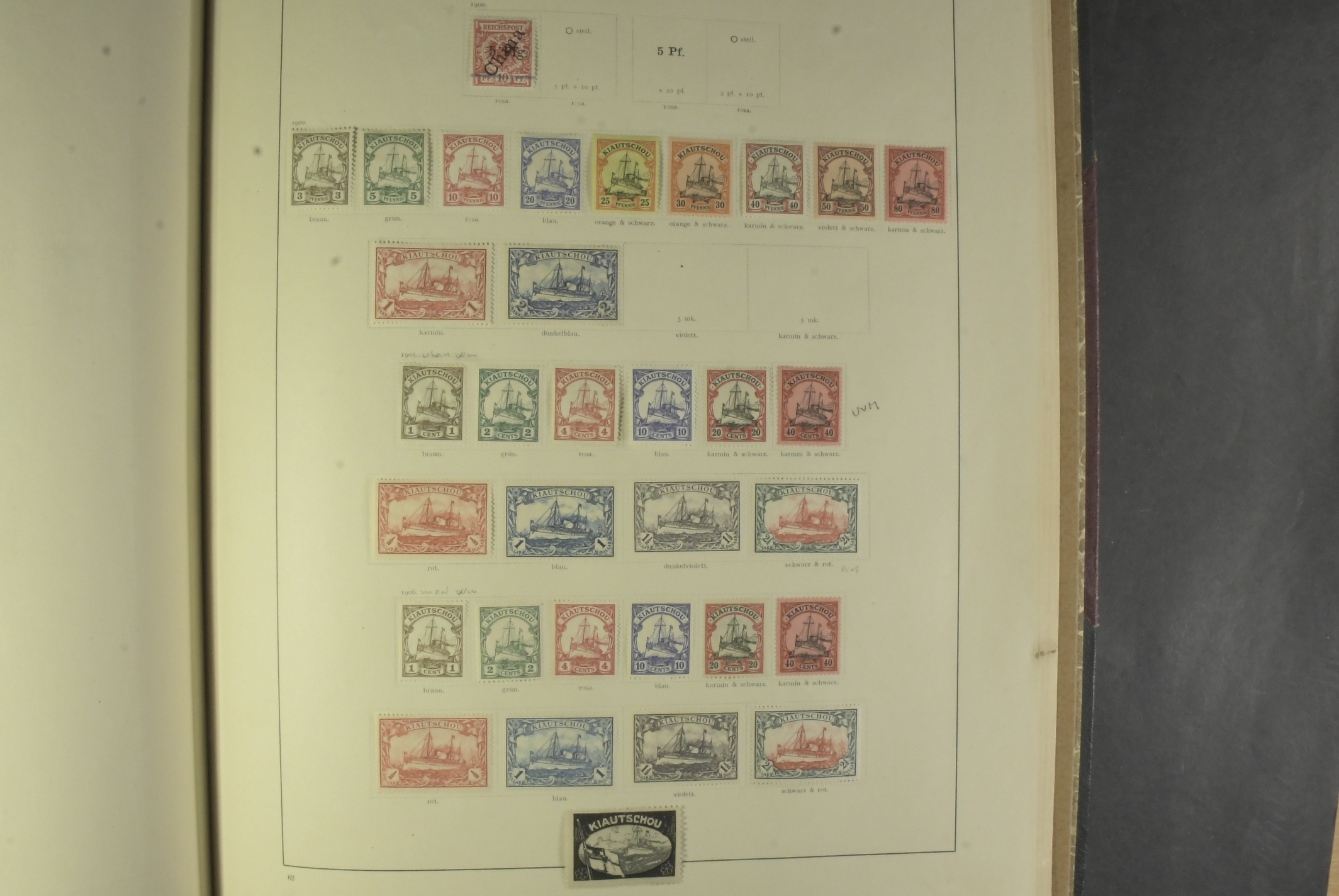 Germany, mixed. Collection ★/(★) 1850–1921 in large Scwaneberger album. Interesting collection with many better stamps all mint hinged or with no gum. Very good sections of German states and extensive German colonies. Early German Reich with many shield but many of them without gum. The quality is a bit mixed, especially on the earlier stamps. Later issues are overall fine. This is a premium collection that will benefit and a viewing will give you pleasant surprises. Please see a selection of scans at www.philea.se. (2500)