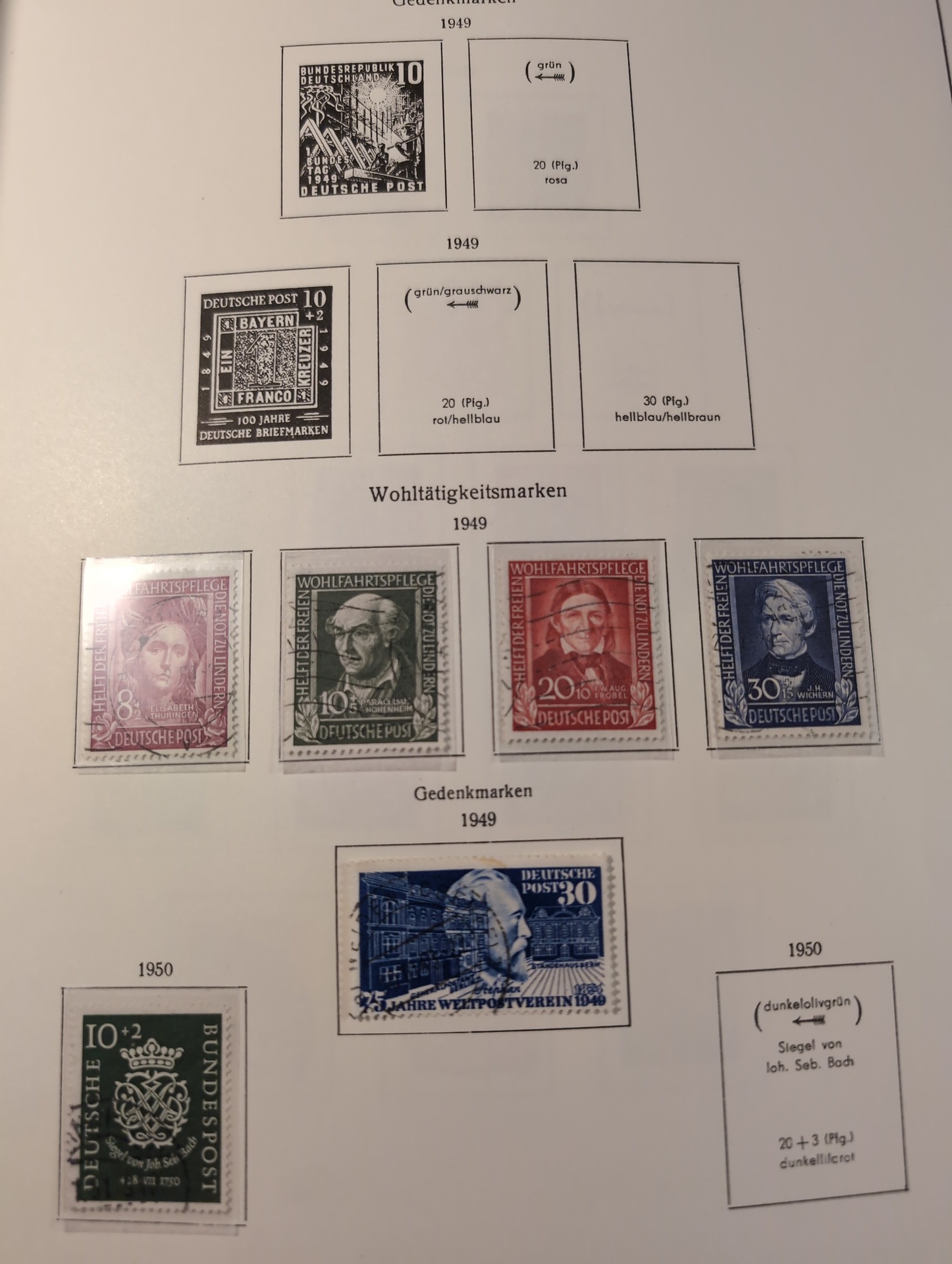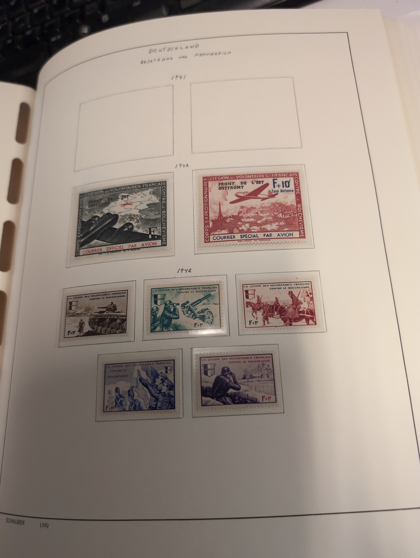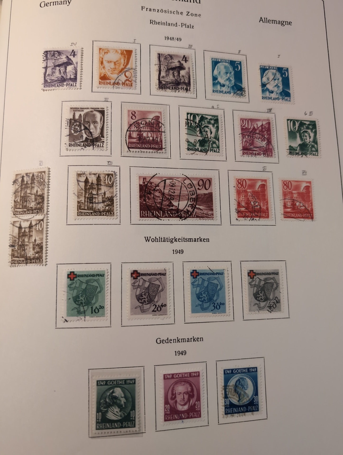 Germany, mixed. Collection ★★/★/⊙ 1939–1990 in three albums. Schaubek album Berlin 1970–1990 ** or ¤, occupied areas i.e. Generalgovernment and Bohemia and Moravia and at the end Russian occupation zone ¤. Second album Kabe with Allied occupation, BRD 1949–1969 ¤, Berlin 1948–1967 ¤, French Zones **/¤ and Russain occupation Zone **, last album with BRD 1970–1985 sparesly filled. A genuine collection with several better M/S and sets. Low Reserve. Viewing is recommended. Mostly fine quality. Approx. 8 kg. (1000s)