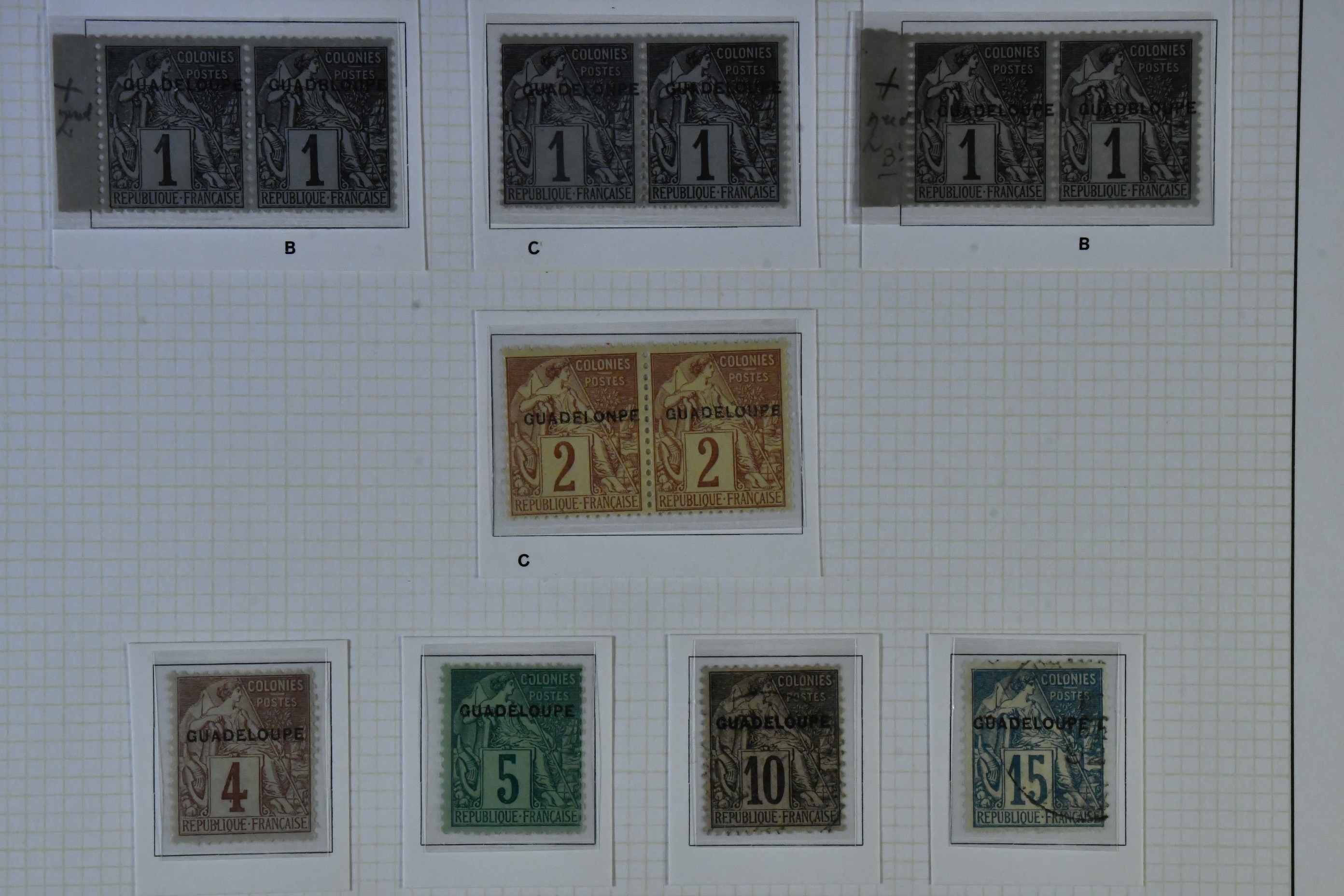 Guadeloupe. Collection ★ 1884–1947 in album. A beautiful coll. with also some extra overprint types. Including many important stamps and in a quality far above average, the collection can really be recommended! The entire lot is presented at www.philea.se. Fine quality.