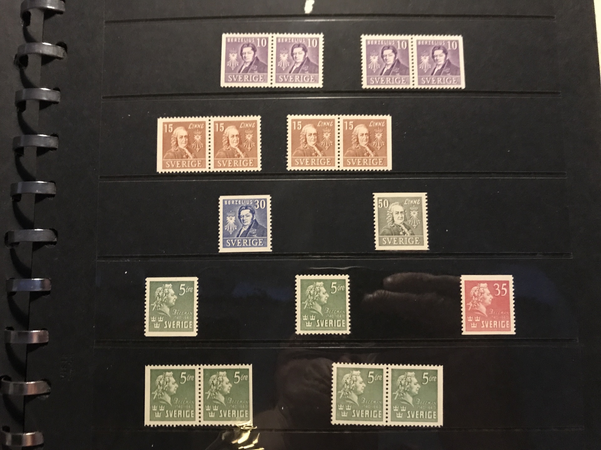Sweden. ★★/★. Mostly ** collection GV Medallion–1966 in Visir binder incl. e.g. F 91 and 105–14 **, 15 ** BC/CB pairs incl. both Berzelius and Linné BC, etc. Please see a selection of scans at www.philea.se.