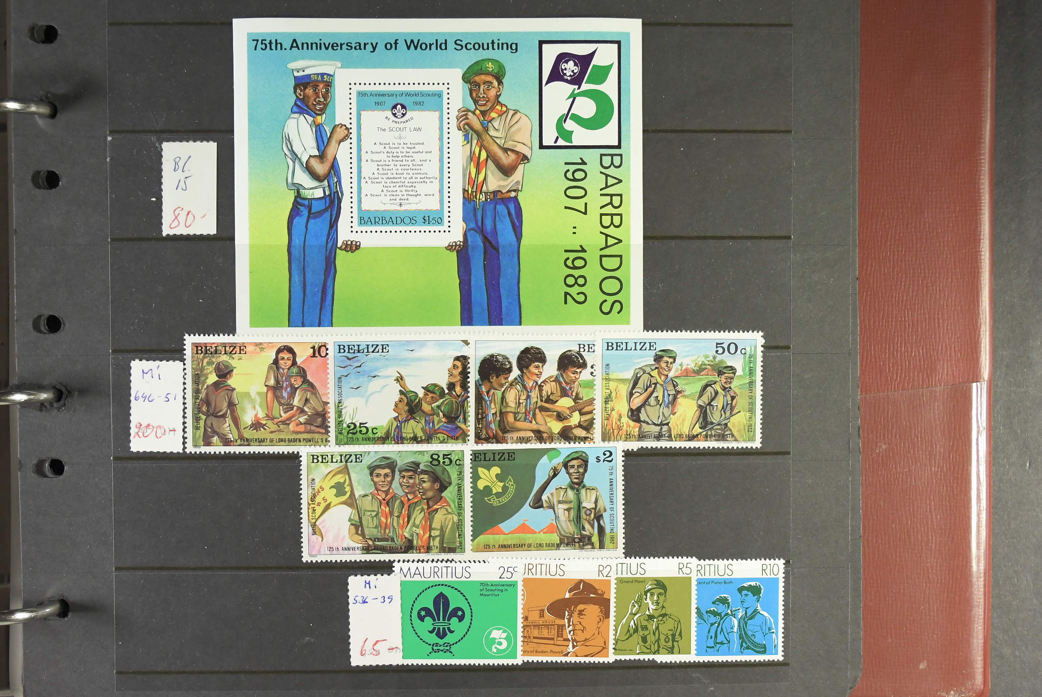 Thematics, Scouting. Collection/accumulation ★★/★/⊙ 1900s in visir album. Stamps, series, sets and mini sheets, mostly from outside Europe. Some better items observed. In the beginning some material about fairy tales. Please see a selection of scans at www.philea.se. Mostly fine quality. (>1500)
