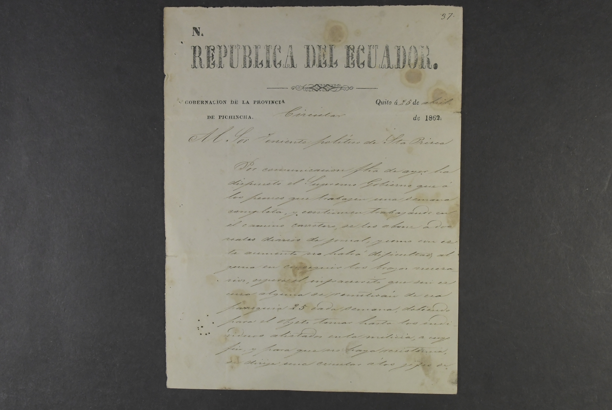 Ecuador. Revenue stamped papers, lot 1860s–1946. About thirty 1860s–1880s revenue stamped paper and a 1946 passport with revenue stamps. Unusual material. A selection of scans are presented at www.philea.se. (Approx. 30)