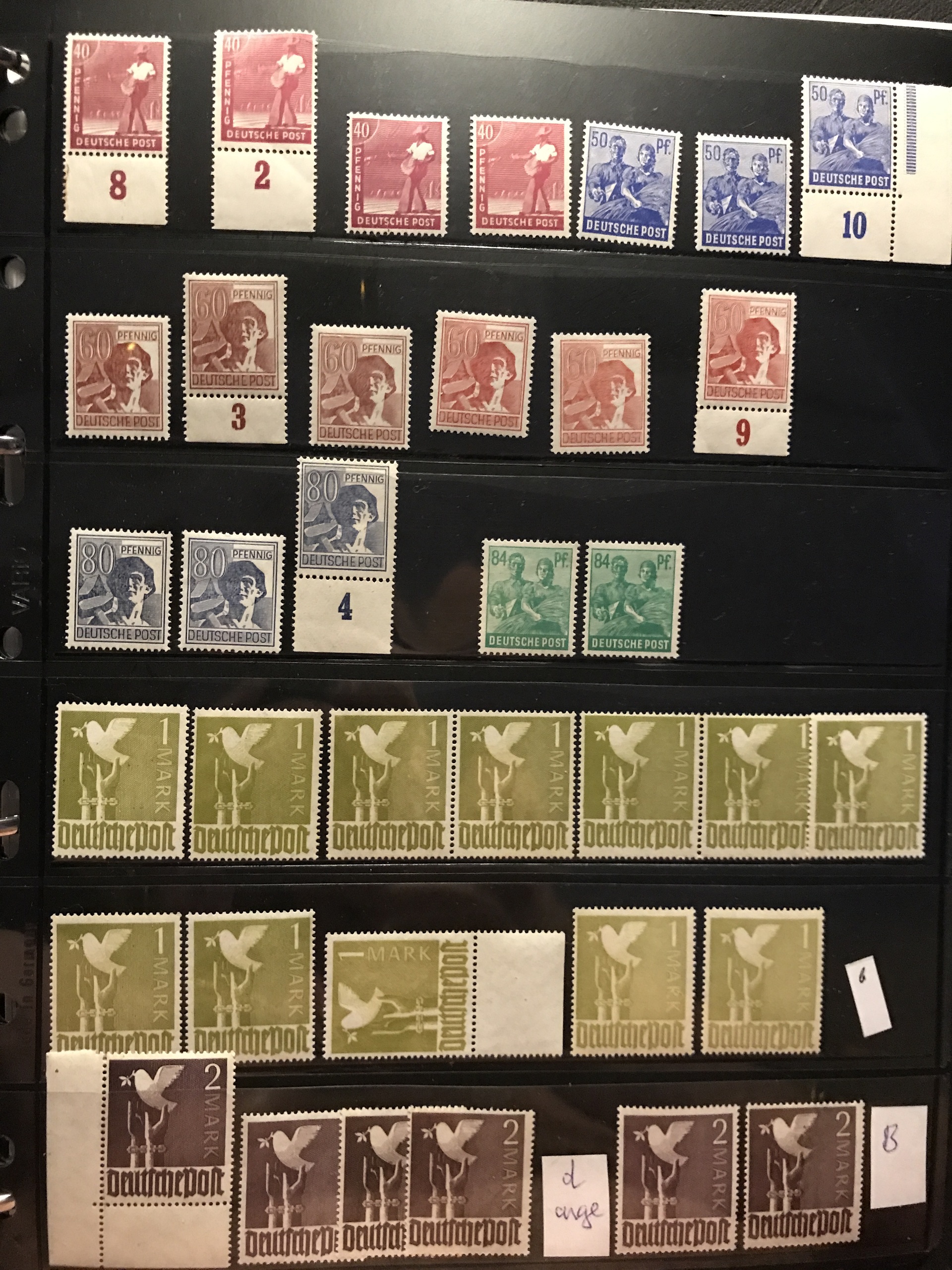 Germany, allied occupation. ★★. Interesting selection with HAN-, varieties and shades Mi911–37 and 943–62 incl. some units. (480)