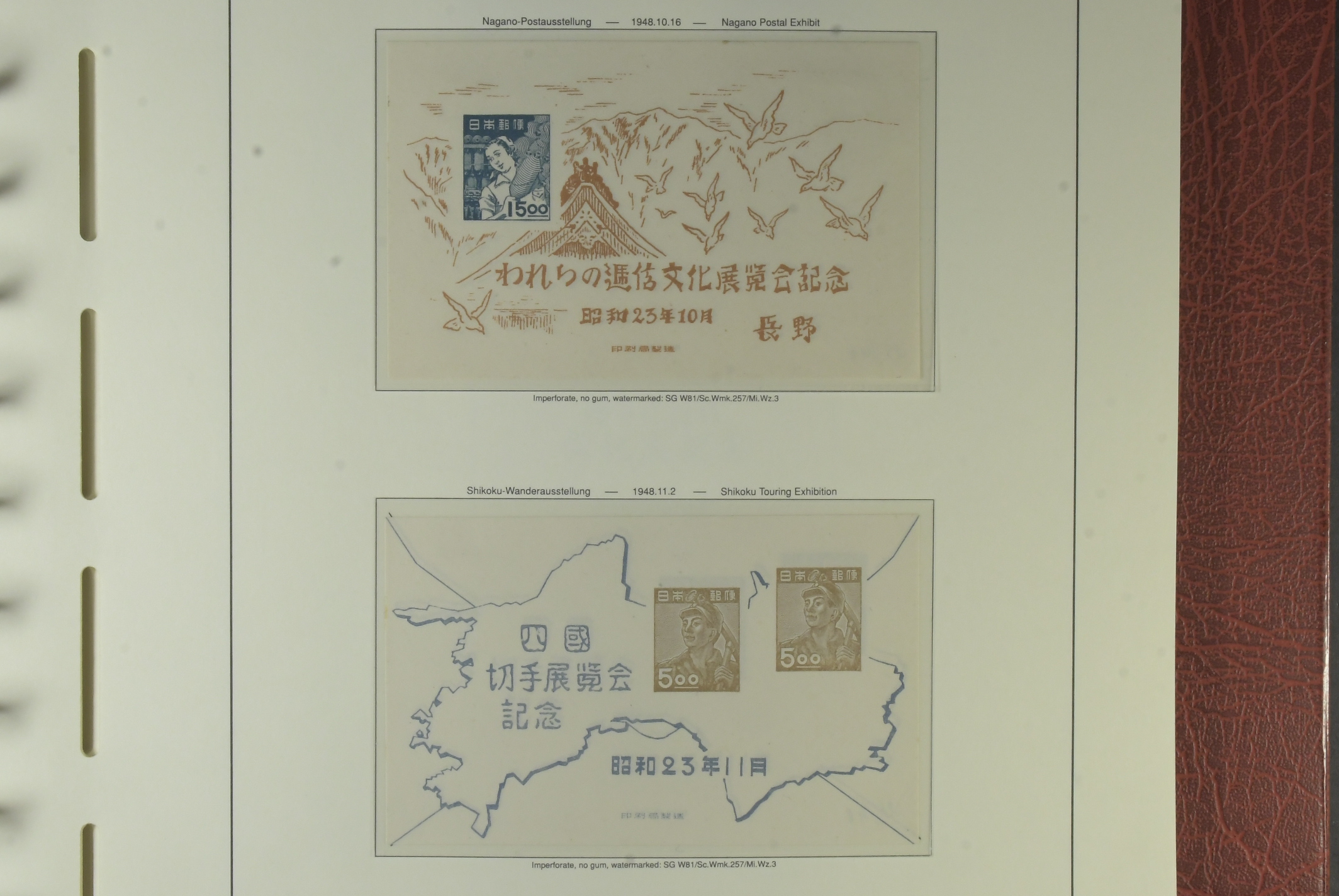 Japan. Collection mostly ★★ 1871–1951 in Leuchtturm album with stamp mounts. Quite sparsely filled (especially until 1937), however with many 'important' items as mini sheets. Fine quality. (>400)