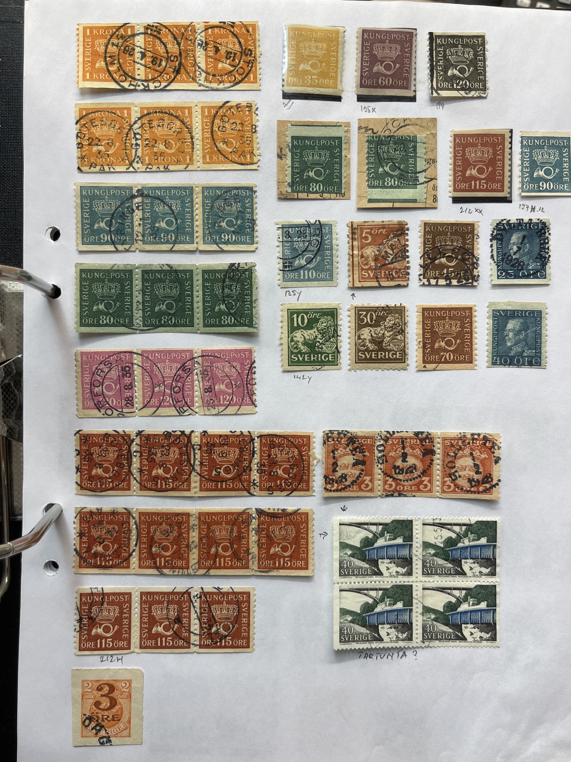 NORDIC COUNTRIES. Collection/accumulation ★★/★/⊙ old–modern in box with three albums and on leaves. With Norway, Denmark, Greenland, The Faroes and Sweden. Approx. 8 kg.