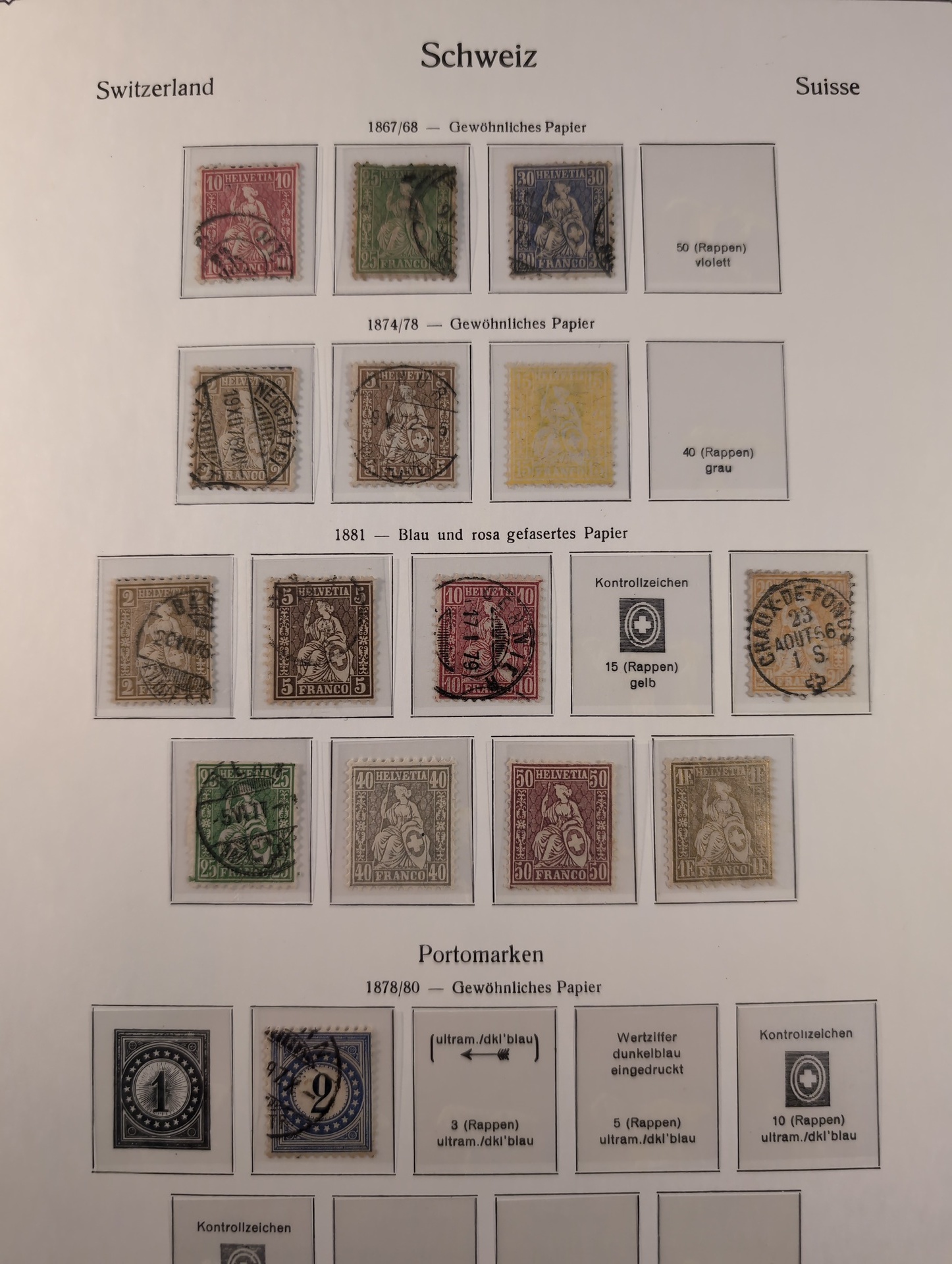Switzerland. Mostly used. Six stockbooks and three albums, simple collection in Kabe album and the stockbooks with used duplicates and some 1970s FDC. Approx. 16 kg.